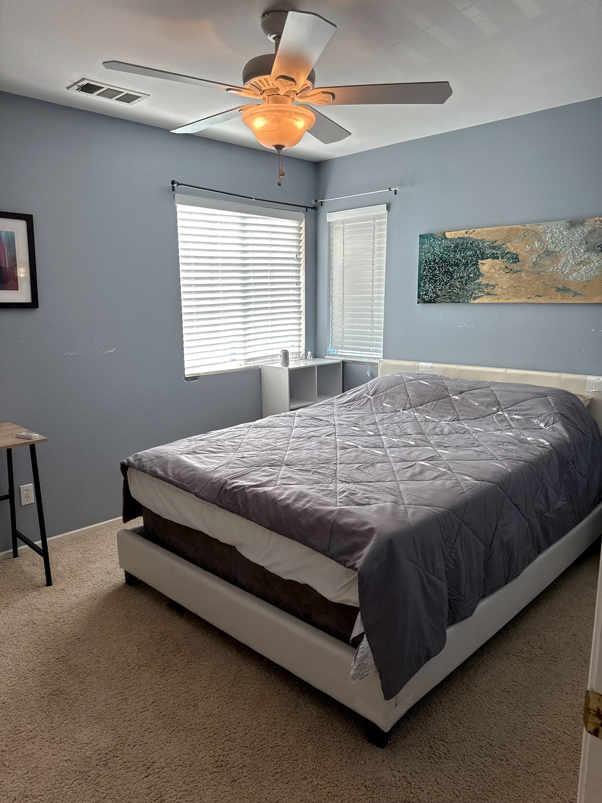 Aconchegante área privada para hóspedes com entrada sem chave na unidade. 1 quarto com cama queen. Refrigerador e micro-ondas são fornecidos. O banheiro é abastecido com papel higiênico, toalhas, xampu e sabonete. Um ferro e secador de cabelo fornecidos para seu uso no armário. A área de hóspedes é privada com separado, mas ligado à casa principal. Aquecimento central: o ar-condicionado é controlado na casa principal. Estamos a 10 minutos de carro do aeroporto de Ontário, do centro de convenções de Ontário, da arena Toyota e do Ontario Mills.