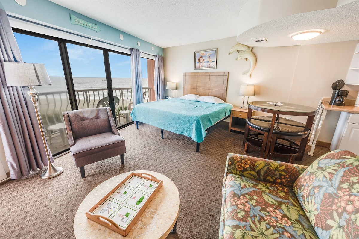 Relaxe com toda a família neste condomínio à beira-mar lindamente atualizado no Caravelle Resort. Desfrute de vistas deslumbrantes para o Oceano Atlântico, acesso direto à praia e um ambiente familiar. Totalmente mobiliado com uma cama Murphy versátil, é perfeito para famílias, casais ou viajantes individuais. A poucos passos da areia, piscinas, banheiras de hidromassagem, restaurantes, lojas e atrações — sua escapada em Myrtle Beach espera por você!