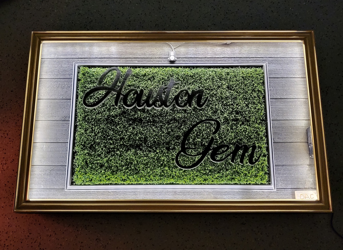 Deleite-se com o design elegante deste espaçoso oásis de 5 quartos e 3,5 banheiros recentemente renovado, imerso em um bairro tranquilo e amigável. Oferece uma escapada luxuosa a 30 minutos do centro de Houston, Centro Médico, restaurantes, lojas, atrações e marcos. ✔ 5 quartos confortáveis Banheira de✔ hidromassagem e sala de cinema (Vapor e Stream!) Sala de estar com design✔ aberto Cozinha ✔ totalmente equipada ✔ Quintal ✔ Sessão ✔ Smart TVs Carregador ✔ rápido da Tesla Wi-Fi de✔ alta velocidade Estacionamento ✔ gratuito
