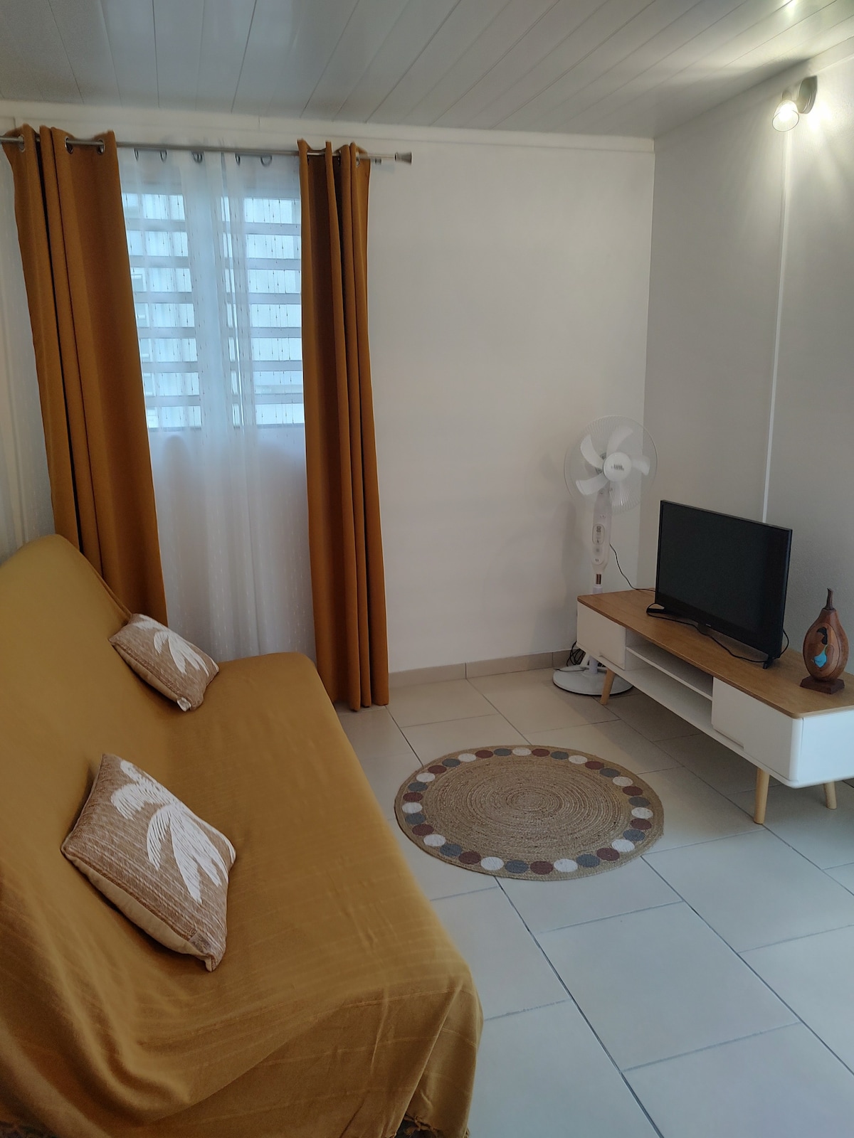 O apartamento (tipo suíte, composto por quarto, sala de estar adjacente, terraço, pátio, banheiro com banheira) está localizado em uma vila de artistas com vista para o mar. A cozinha externa está totalmente equipada. O amplo pátio é muito ensolarado. Este alojamento independente do resto da vila, está localizado em uma área residencial tranquila a 15 minutos de Fort-de-France, a 10 minutos das lojas e a 5 minutos da praia mais próxima. Ideal para descanso e relaxamento, mas também para estadias profissionais.