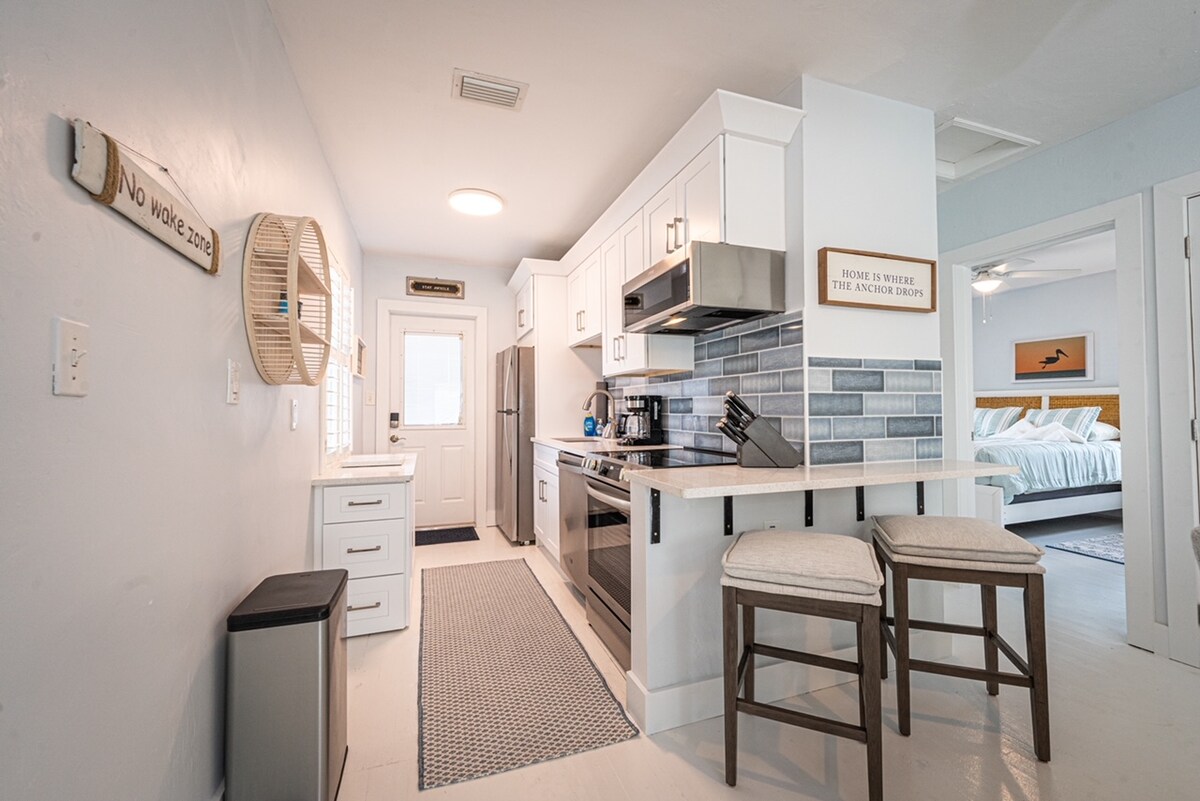 Bem-vindo à nossa eficiência aconchegante em South Hutchinson Island, Flórida! Nosso quarto é perfeito para solteiros ou casais, com uma cama queen Murphy e entrada privativa no térreo. Uma placa de indução, forno de convecção, geladeira de tamanho completo, Smart TV e um banheiro completo. Localizado em um bairro amigável, estamos perto de praias, cais, restaurantes e centro histórico. Venha ficar conosco e desfrutar de tudo o que a Costa do Tesouro tem a oferecer!