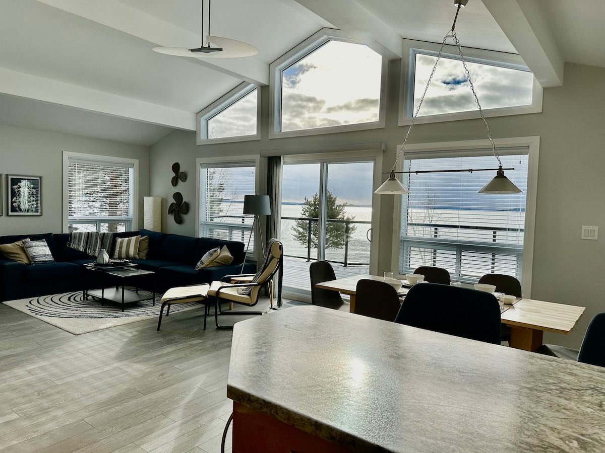 Delicie-se com o esplendor do majestoso Lago Superior neste retiro muito privado, de quatro estações, à beira do lago, imerso na natureza. Nova reforma da casa de campo em abril de 2024, incluindo nova pintura (paredes e teto) e novo piso de tábuas de vinil em todo o local. O design espaçoso de conceito aberto e as grandes janelas permitem que você aprecie a vista deslumbrante da Baía de Mink e dos penhascos circundantes. Mime-se na banheira de hidromassagem depois de um dia de caminhadas/passeios com raquetes de neve pelas trilhas panorâmicas e desfrute das estrelas... elas brilham mais aqui!