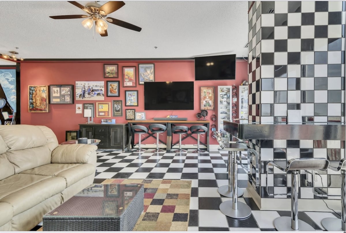 🏁 Retiro ao lado da pista: Condomínio de 1 quarto estilo Speedway com vistas privilegiadas! 🏎️ Durma 4 confortavelmente neste elegante refúgio de 1 quarto com uma **cama king size** e **sofá-cama**. Desfrute de comodidades imbatíveis: **piscina em forma de Texas**, **quadras de pickleball** e um **pátio com vista para a pista de corrida** — a poucos passos passos da Texas Motor Speedway! Perfeito para fãs de corrida ou uma divertida fuga Lone Star. Reserve já! 🚗💨 #TexasVibes Você vai adorar Perfeito para casais e famílias pequenas Lavadora/secadora de roupa na unidade 🏁 Reserve agora