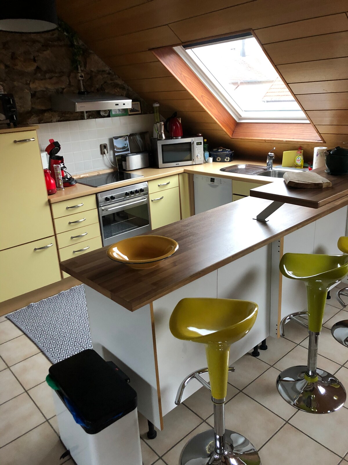 Em uma residência privada, muito tranquila e bem cuidada, F1 de 30 metros quadrados, moderno, no 3º e último andar, prático, acolhedor, perto de uma grande área comercial, pode acomodar dois viajantes. Localizado a 10 minutos da Alemanha, todo confortável, 1 cama de casal, wi-fi, TV, estacionamento privativo, banheiro com banheira/chuveiro, secador de cabelo, espelho de aumento e máquina de lavar roupa, cozinha equipada com micro-ondas, forno, cafeteira "senséo", torradeira, chaleira... 1 cama extra disponível.