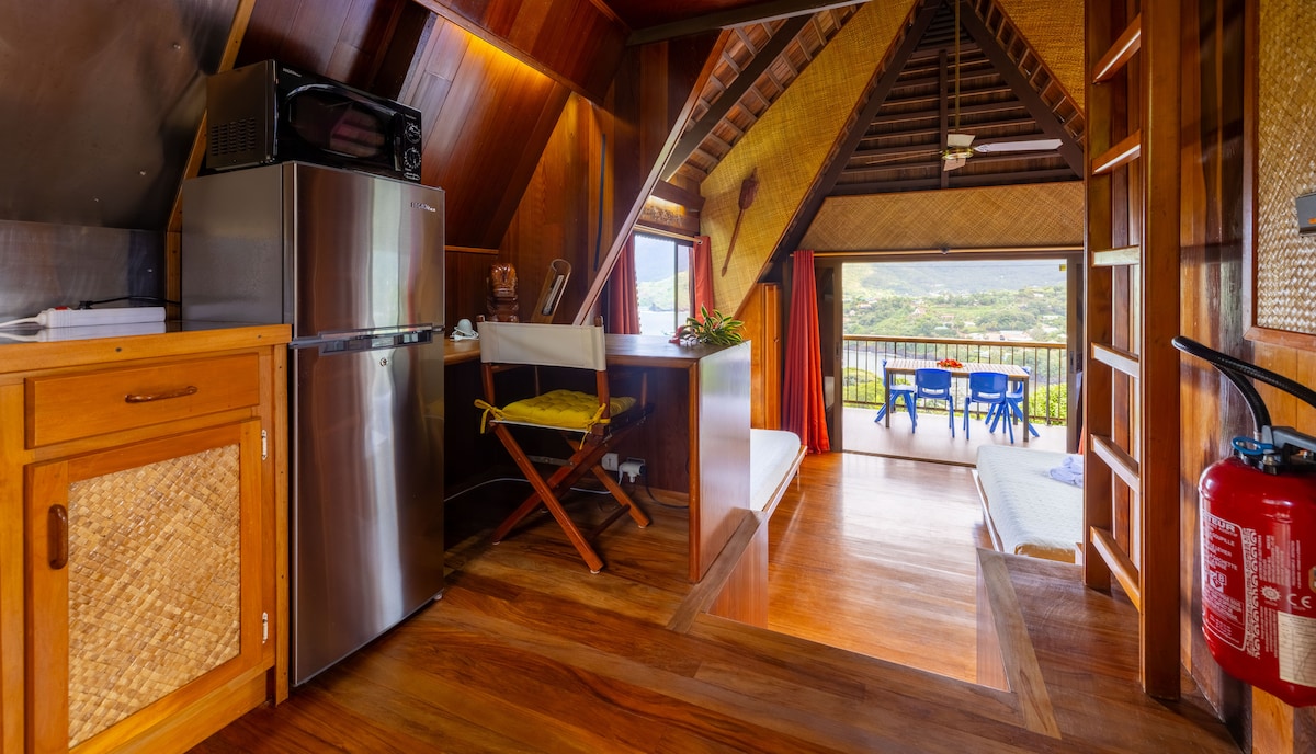 O Gallery é uma das duas acomodações independentes do My Island Home, juntamente com o Studio. Esta casa de madeira distribuída em três andares com mezanino oferece um espaço generoso e um ambiente acolhedor, perfeito para curtir sua estadia em Huahine. Rodeado por vegetação tropical, ele convida você a experimentar o ritmo tranquilo da vida na ilha. Bicicletas e carros alugados estão disponíveis no local para ajudar você a explorar a ilha no seu próprio ritmo. Os traslados de aeroporto ou balsa estão incluídos.