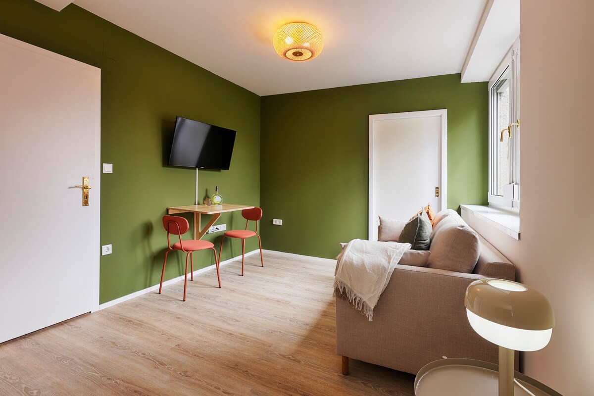 Nosso compacto apartamento de 70m² no 1º andar oferece espaço para até 4 pessoas e é ideal para férias relaxantes. O apartamento inclui uma área de estar confortável, um quarto com cama de casal e outro com beliche. Roupa de cama e toalhas são fornecidas para que você não tenha que se preocupar com nada. O banheiro espaçoso é um destaque especial. Além disso, uma cabine de infravermelho/cabine de calor convida ao relaxamento.