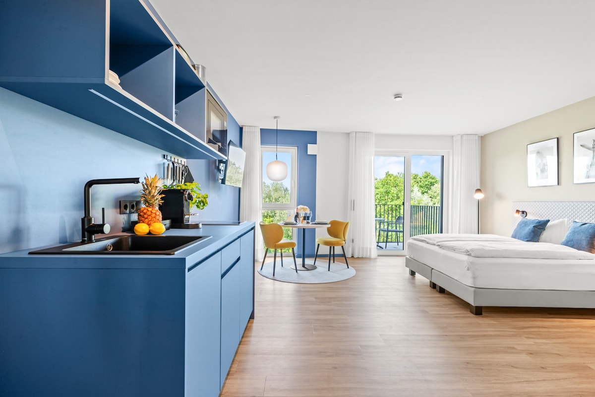 Motel42 - Vida temporĂĄria! LOSWOHNEN. FEEL COMFORTABLE - Ă© exatamente isso que vocĂȘ pode fazer em nossos 42 apartamentos de negĂłcios do motel! Nossos estĂșdios totalmente mobiliados e de alta qualidade combinam o carĂĄter de bem-estar de um apartamento. Em nossos apartamentos de serviço, nossos hĂłspedes podem "viver" diretamente. Uma cozinha totalmente equipada, uma ĂĄrea de jantar, de estar e de dormir aconchegante e um banheiro espaçoso criam uma atmosfera de apartamento.