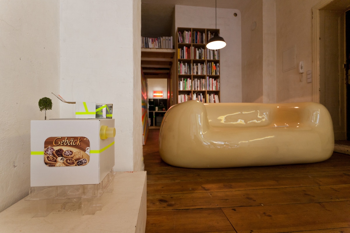 Originalmente projetado e planejado como um showroom /sala de reuniões. A ideia era construir um lugar para discutir, conhecer e representar. Motivo para a localização, que é ótimo para chegar a qualquer coisa nesta cidade de Berlim em rápido crescimento. O espaço e a atmosfera têm uma sinergia feliz e um equilíbrio entre trabalho e vida pessoal. Eu amo isso aqui - geralmente é meu escritório . Temos 2 grandes telas de TV de tela plana com Amazon Prime, Netflix um sistema de som com Spotify e uma lareira aberta para relaxar.