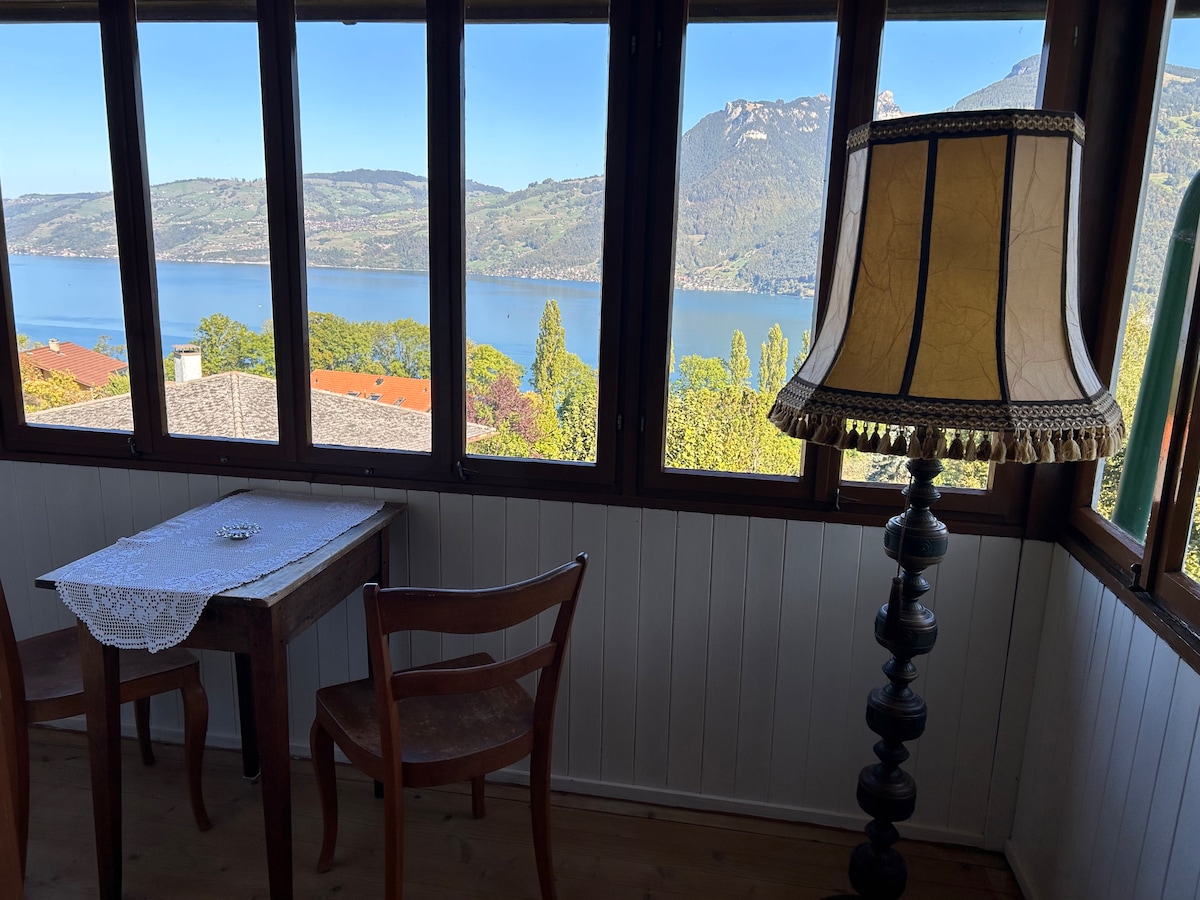 Acomodação moderna com vista panorâmica para o Lago de Thun