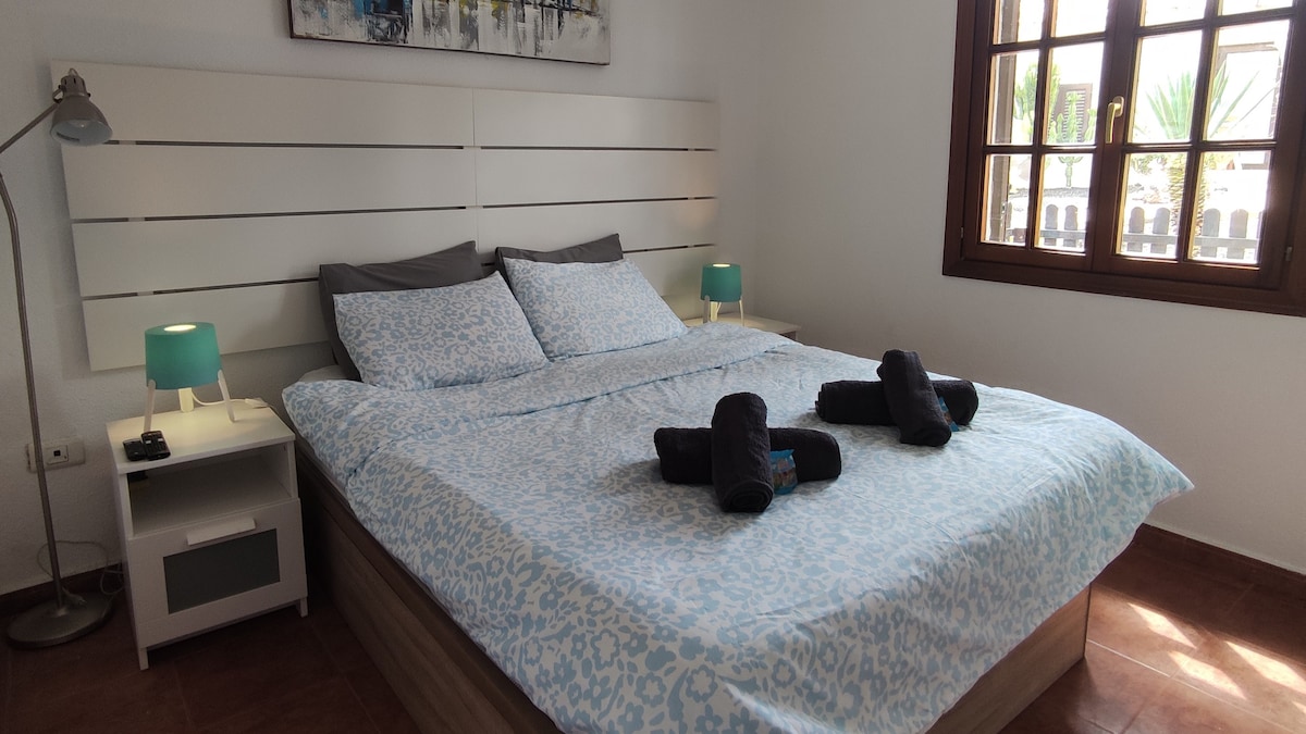 Relájate y disfruta de este tranquilo bungalow a escasos minutos andando de la playa, del centro y de las increíbles Dunas de Corralejo ✨ Ideal para smart working, viajes de surf, yoga y para descubrir todos los secretos que esconde la isla 🏝️ El apartamento se encuentra en un complejo vacacional con piscinas, gimnasio, jardín, bar y solarium 🌞 Además, tendrás a tu disposición una terraza privada, una cama matrimonial, una smart TV de 50 pulgadas y una cocina totalmente equipada 🍲