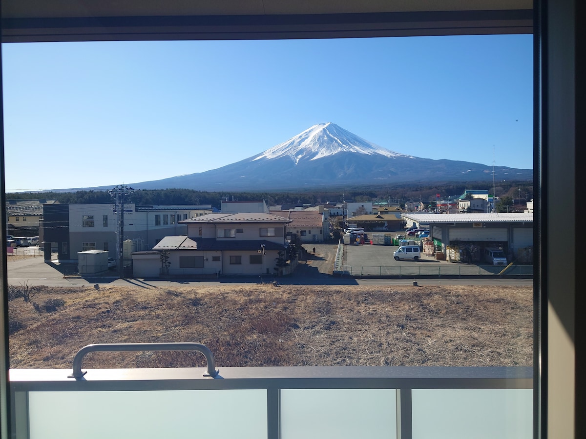 富士山はどの部屋からでも見ることができますが、ご宿泊のお部屋はランダムで振り分けられるため、お部屋の指定はお受けできません。 あらかじめご了承ください。 河口湖駅から徒歩8分の宿です。富士山は裾野まで見えます!写真を撮影するために立ち寄る人もいるくらい晴れた日は富士山が良く見えます。富士山を背景に、富士急の面白い車両が見えます。コンビニ徒歩2分。ミニキッチン完備で、調理器具と食器も完備しています。脱衣場とトイレは別れており、浴室は湯船と洗い場別れてますのでゆっくりくつろいでいただけるとおもいます。 客室は全体で32㎡です。他に客室から直接出られる3.6㎡のバルコニーが有りバルコニーで喫煙も可能てす。 客室はベッドルームとリビングダイニングがワンルームとなっています。 クイーンベッド2台と4名掛けられるソファーダイニングが有り、大きなスーツケースを広げるスペースも有り、4名様での利用も可能です。 自動車のための無料の駐車場も完備しております。