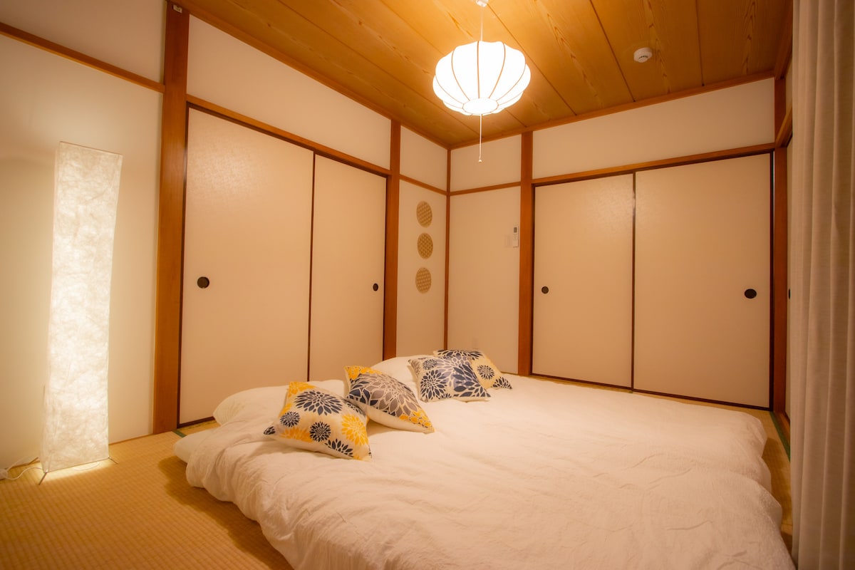 O Mimihaus Makuhari está localizado a 1 minuto da estação Keisei Makuhari e a 4 minutos da estação JR Makuhari, no meio de Narita e Tóquio, em uma localização muito conveniente. Além disso, fica a cerca de 5 minutos de táxi da estação de Kaihinmakuhari, onde chega o ônibus de limusine do aeroporto de Narita. Perto dali, há um grande supermercado Ito-Yokado, o maior shopping center do Japão, o Makuhari Seaside Park, que abriga um jardim japonês, e é muito conveniente para ir ao Makuhari Messe e ao Tokyo Disneyland. Também temos duas bicicletas para os hóspedes passearem por Makuhari. Você pode usá-las livremente durante a sua estadia. (Certifique-se de trancá-los para evitar roubos) Além disso, o quarto tem uma cama queen size e um "kotatsu" (mesa de assento no verão) típico do Japão, onde você pode se sentir confortável assistindo TV ou comendo. Também é possível dormir puxando o "futon" e aproximando o kotatsu, de modo que pode acomodar até 3 pessoas. (Por favor, tenha cuidado, pois ficará bastante apertado se você tiver muita bagagem) Você pode desfrutar de uma estadia confortável experimentando o kotatsu japonês (chabudai no verão).