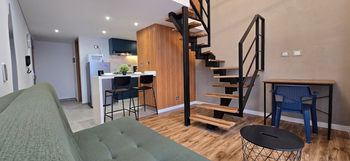 Loft aconchegante, central e seguro! A apenas 10 minutos do aeroporto e a 5 minutos do terminal rodoviário de El Salitre. Perfeito para casais que buscam privacidade e conforto. Desfrute de seu próprio terraço ao ar livre mobiliado, perfeito para relaxar e absorver um pouco de ar fresco. Você estará cercado por mais de 15 restaurantes, mercearias, padarias, bancos e 2 shoppings. Ideal para o seu processo de visto americano, o CAS fica a apenas 7 minutos de distância.