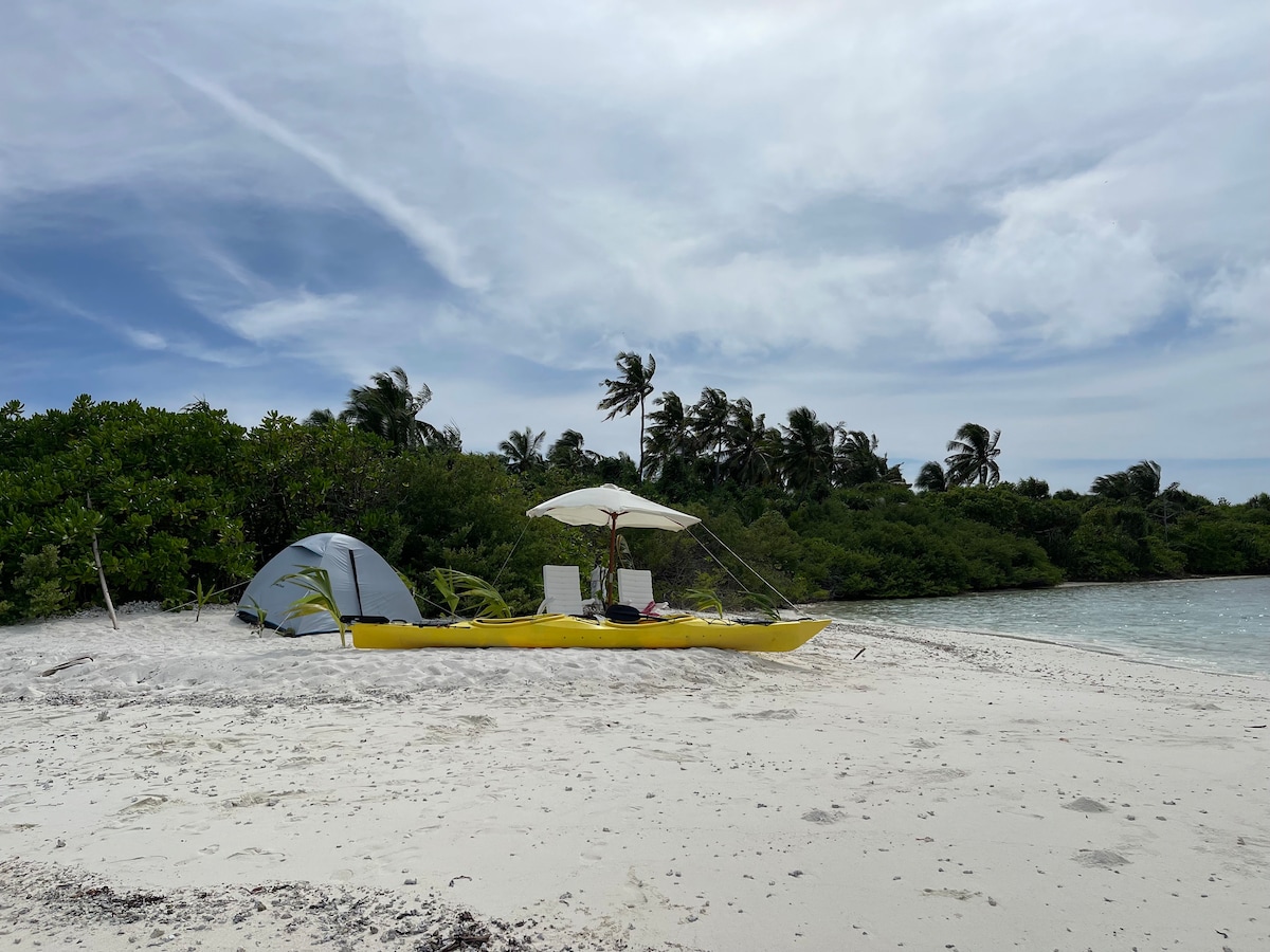 Camp on a private island in the Maldives