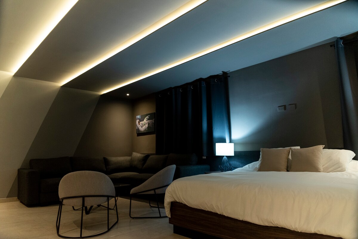Bem-vindo à nossa suíte master, moderna e elegante em uma localização privilegiada. Esta suíte foi projetada pensando no seu conforto, com uma cama king size e uma ampla sala de estar para que você possa relaxar como se estivesse em casa. A suíte foi cuidadosamente decorada para lhe oferecer uma experiência de luxo e conforto. Tudo está impecavelmente limpo e pronto para você aproveitar a sua estadia. A localização é perfeita, perto dos melhores restaurantes, lojas e centros médicos.