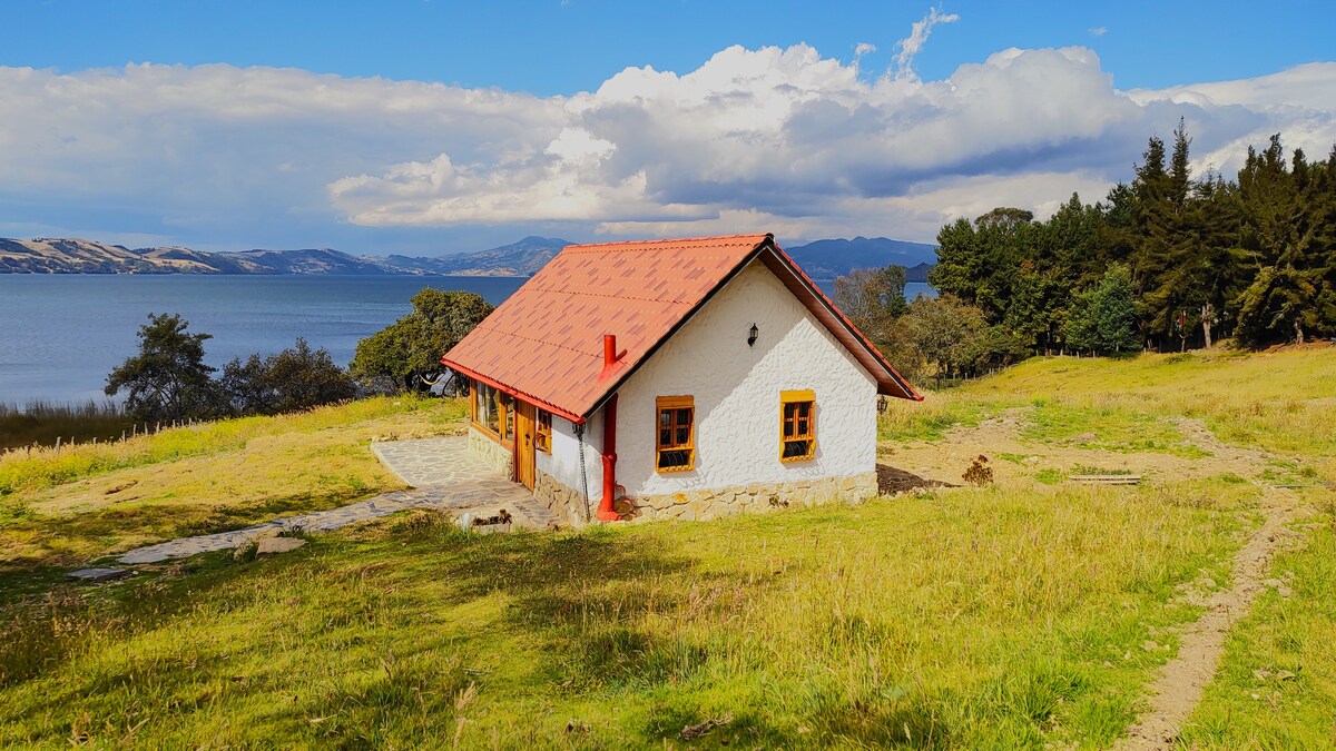 Crucero House, uma acomodação única no Lago Tota, com arquitetura elegante construída em terra batida e caña brava, cercada por montanhas, árvores nativas e uma vista espetacular do Lago Tota. Cada espaço foi projetado para oferecer conforto e conexão com a natureza, com detalhes como lareira, banheira de hidromassagem, cozinha equipada e grandes áreas verdes. Perfeito para descansar, desconectar-se do barulho e desfrutar de uma paisagem inigualável do nascer ao pôr do sol.