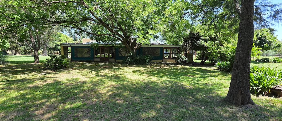 Estancia El Edén es nuestro verde en Ranchos. Contamos con un parque con árboles y plantas (que podrás ver desde las habitaciones!) La casa de campo es un espacio independiente dentro del predio que cuenta con desayuno de campo incluido, microondas, pava eléctrica, aire acondicionado, 1 cama king size y 2 camas individuales, estacionamiento privado, pileta, wifi gratis y tv led. Nuestro pueblo se caracteriza por ser 100% seguro, con la compañía de la laguna y el campo argentino. ¡Te espero!