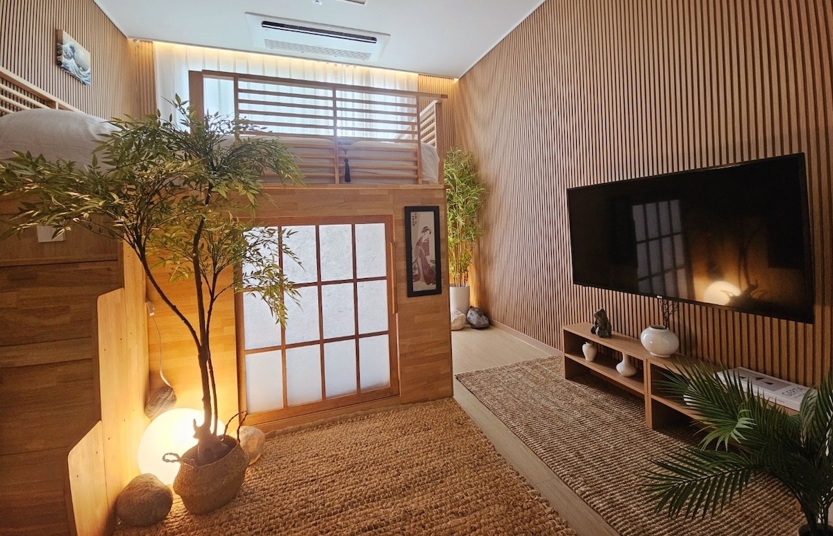Vista para o mar, acomodação oriental, loft (4 pessoas), 18 minutos do aeroporto de Incheon
