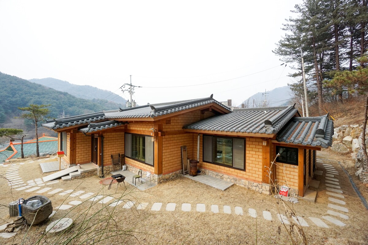 Bem-vindo ao Eonhyangja! Os melhores artesãos da Coreia do Sul usam os melhores pinheiros, o solo vermelho natural, o pinheiro e o óleo de camomila para criar uma casa de prata com cuidado, pensando apenas na saúde e na cura. Alivie o estresse do dia-a-dia e crie memórias doces e inesquecíveis com seus entes queridos! Desfrute de um descanso em uma atmosfera pacífica em uma montanha cercada por uma floresta de pinheiros Sob o céu noturno cheio de estrelas cintilantes Aproveite ainda mais com um churrasco à carvão com pessoas importantes * Descanse bem em um quarto de barro amarelo. Vamos proporcionar a você a melhor experiência e um descanso confortável. Obrigado.