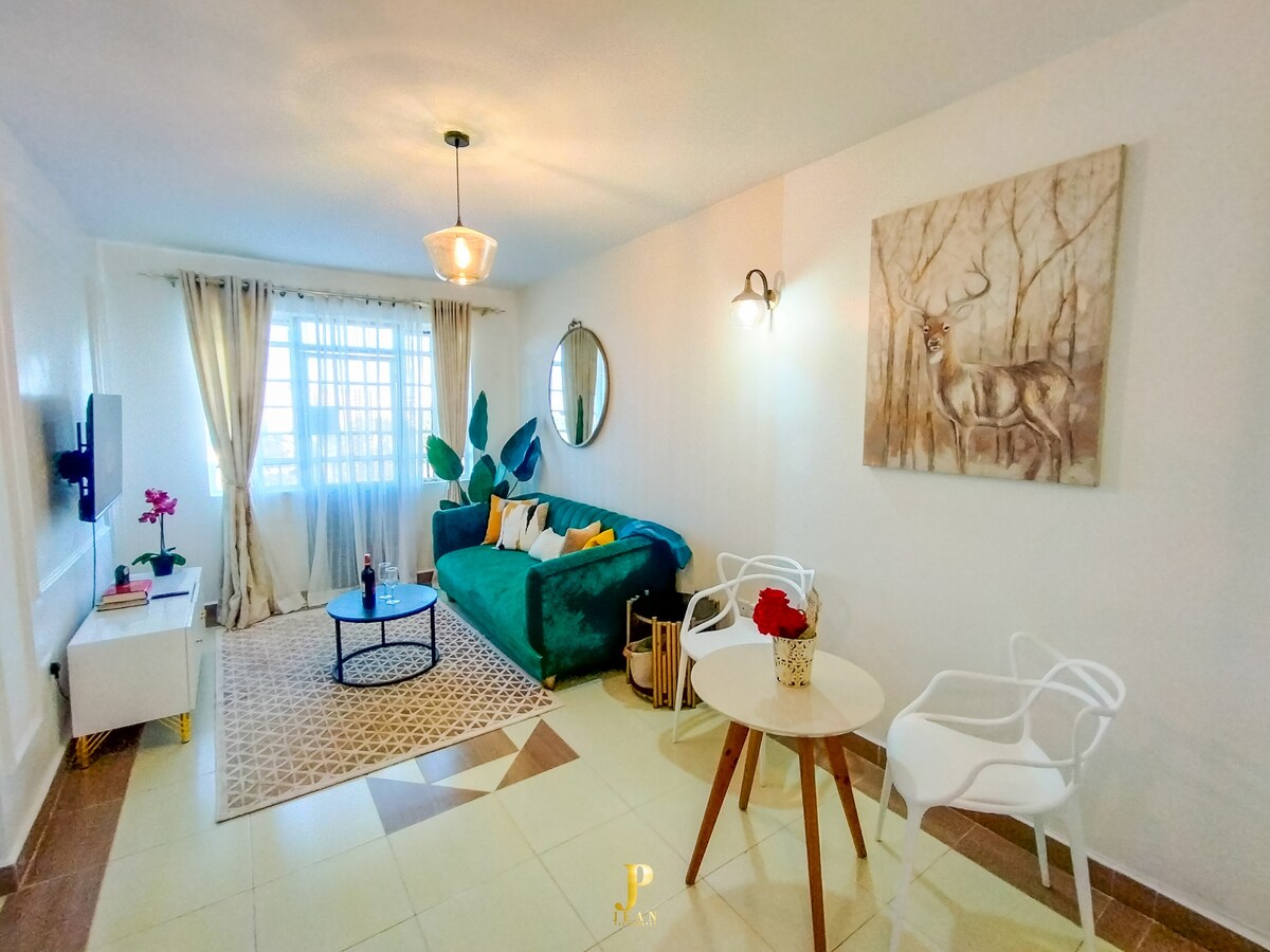 Bem-vindo ao nosso requintado apartamento de um quarto aninhado no coração de Nairóbi. Este espaço cuidadosamente projetado oferece uma atmosfera acolhedora e íntima, perfeita para viajantes individuais, casais ou aqueles que procuram um retiro tranquilo. Localizado a apenas 25 minutos de carro do JKIA e perto da cidade jardim e dos shoppings da montanha, este lugar oferece o refúgio ideal onde você pode relaxar e recarregar. Seja visitando a negócios ou a lazer, reserve sua estadia conosco hoje e embarque em uma viagem inesquecível.
