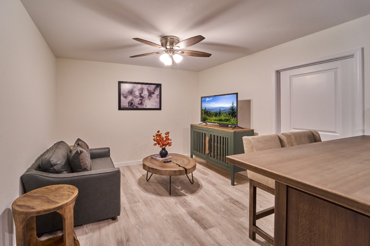 Experimente a magia das Smokies a partir deste apartamento de design de bom gosto feito para relaxar no coração de Gatlinburg. Desfrute do quarto King Size com banheira de hidromassagem e banheiro privativo. A sala de estar tem um sofá-cama, TV e área de refeições. Não se esqueça de relaxar à beira da piscina no verão ou desfrutar da lareira no inverno e caminhar pelo nosso caminho dedicado ao centro da cidade! A cozinha tem um cooktop de indução, geladeira, micro-ondas e cafeteira.