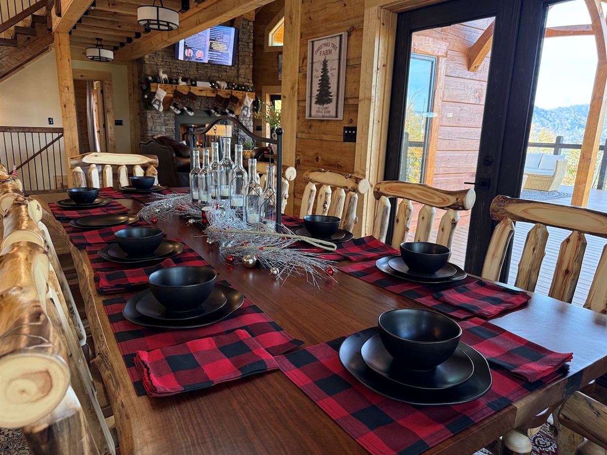 ⭐ Reserve agora! Vagas limitadas em 2025!🌄 Milhões de dólares em vistas MELHOR na região ESTRADAS FÁCEIS! NOVA cabana de luxo! Localização! 🏊 Grande PISCINA INTERNA PRIVATIVA Jogos de 🎲fliperama e mesa de bilhar 🎥Home⭐ Theater Banheira de 🔥hidromassagem Wi-Fi de📶 alta velocidade Fogueira 📺 8 TVs inteligentes para aplicativo de streaming 🔥2 Lareiras elétricas internas ♛ 5 Quartos (banheiros privativos), 5 Banheiros Churrasqueira 🥦externa Estacionamento 🚗 privativo