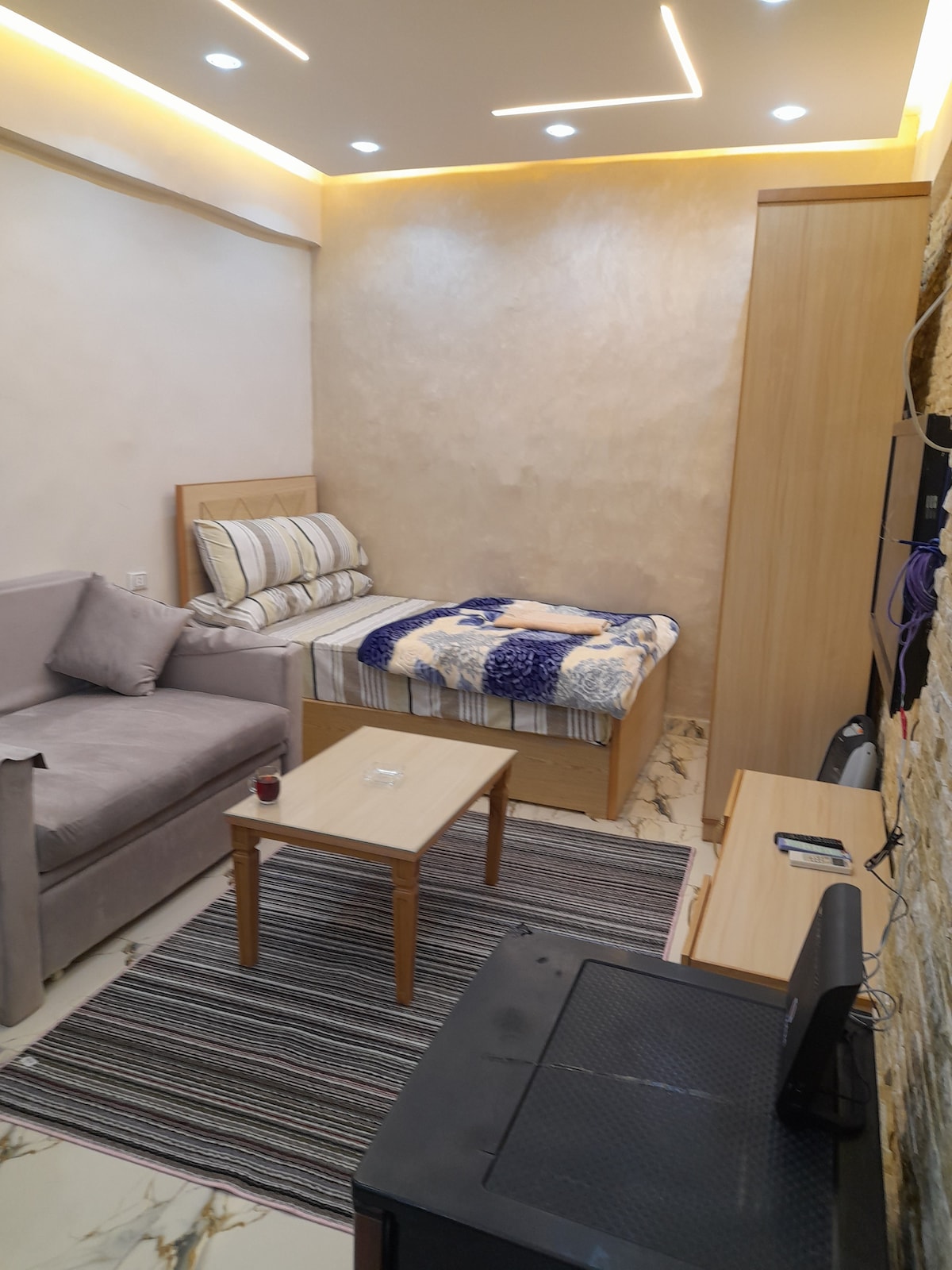 Estúdio de luxo com um design moderno e uma atmosfera relaxante, localizado em uma área tranquila em Nasr City, perto do City Stars Mall. Apresenta uma banheira privativa independente com água quente e chuveiro, colchões ortopédicos para o máximo conforto, uma cozinha totalmente equipada e Wi-Fi de fibra de alta velocidade. Perfeito para casais, viajantes individuais e hóspedes de negócios que procuram uma estadia limpa, acolhedora, privada e tranquila perto do aeroporto e das principais atrações.