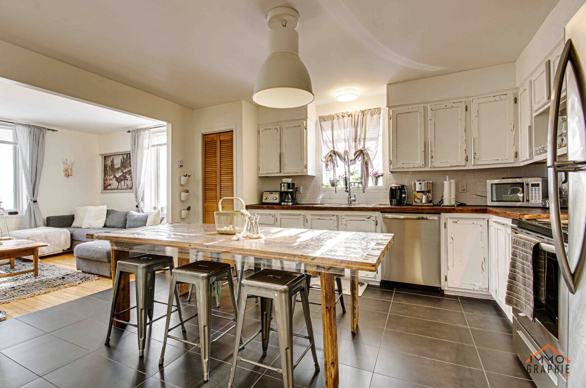 Esta casa, construída em 1901 e carinhosamente chamada de Casa Brunelle pelos moradores locais, está repleta de história. De frente para o magnífico rio São Lourenço, oferece nasceres e pores do sol espetaculares, assim como a passagem de transatlânticos. Localizada em um terreno intimista de 1.400 m², com um campo e uma fazenda nos fundos, onde você pode ouvir os animais, ela oferece um terraço com banheira de hidromassagem ao ar livre, uma sala de bilhar e uma das praias mais belas de Quebec.