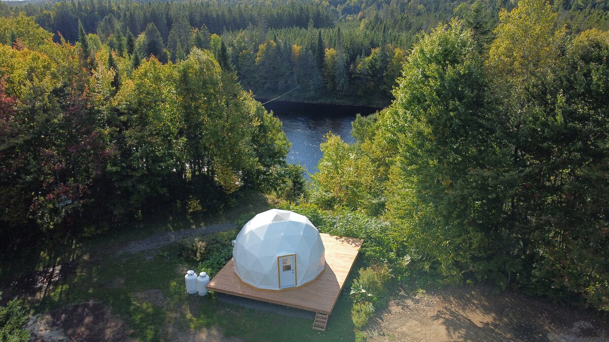 *Expérience sans eau ni électricité* Voici un hébergement de glamping unique située à St-Mathieu-du-Parc. Ce dôme confortable dispose d'un lit queen-size (literie incluse) qui fait face à une grande ''bay window'' avec une vue imprenable sur la belle nature qui l'entoure. Un foyer au bois pour vous réchauffer sera là pour vous accueillir après une journée complète passée à profiter du plein air. Cet espace est unique - et hors réseau/off grid.