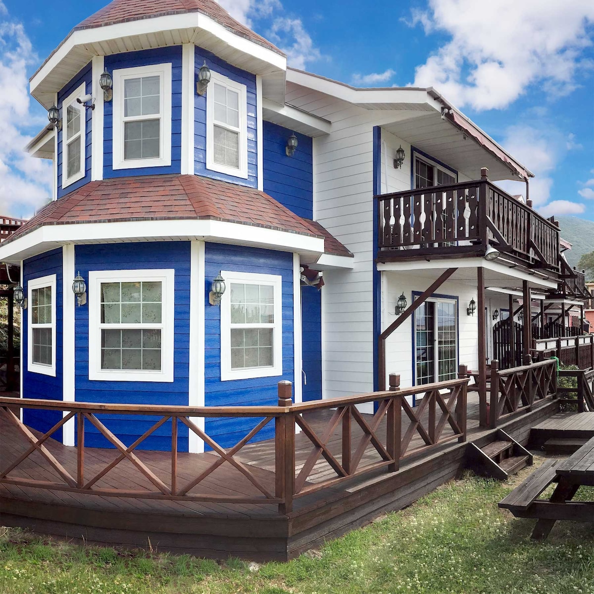 *Geoje Blue Sky* é uma casa de campo independente (uso total do 1º e 2º andar), portanto, você pode manter sua privacidade individual e familiar, pois é um espaço independente sem contato com outros hóspedes durante a sua estadia. Estamos fazendo o nosso melhor para prevenir a COVID-19 através da prevenção e desinfecção. Além disso, nossa casa está cercada por uma floresta de ciprestes que produz fitoncida, então você pode desfrutar do ar fresco. E no deck do primeiro andar e na varanda do segundo andar da nossa casa, você pode ver o mar e desfrutar de um café ou chá com sua família. Além disso, para atividades ao ar livre e churrascos no inverno (novembro a março), instalamos um pára-vento e um aquecedor interno em toda a cabana para proteger contra o frio e considerar o conforto dos hóspedes. Para ♡os hóspedes, estão disponíveis mapas turísticos de Geoje e Tongyeong.♡