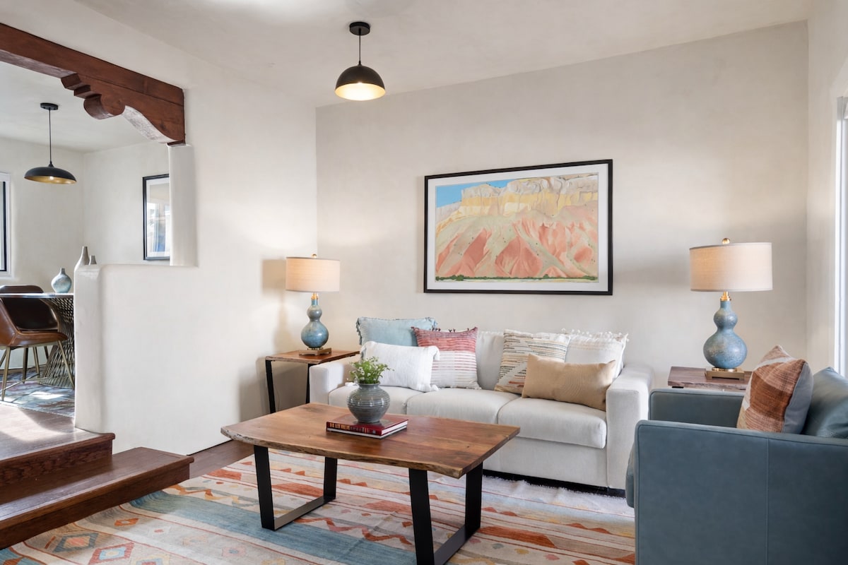 Esta casa de adobe centenária combina o charme clássico do sudoeste dos EUA com o conforto moderno. Localizada a uma curta distância a pé da Praça de Santa Fé, esta casa histórica tem 2 quartos, 1,5 banheiros, estacionamento e um pátio privativo. As portas francesas se abrem totalmente para o pátio, criando uma bela sensação de convivência entre o interior e o exterior, com o ar puro e fresco da altitude pela qual Santa Fé é conhecida. Projetado para uma estadia confortável e autêntica no centro de Santa Fé. É oferecido um desconto de 10% para socorristas, veteranos e militares em serviço ativo.