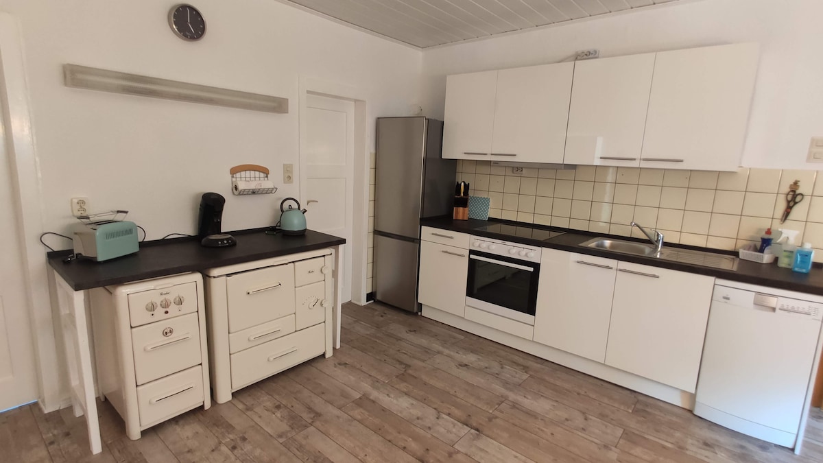 Uma cozinha com espaço de sala de estar, um quarto e um banheiro só para você. O local ideal para comer, viver, dormir e assistir TV. Ou você sai para correr, caminhar ou andar de bicicleta ou apenas para um passeio na natureza. É logo atrás da casa. Nosso apartamento pode ser reservado para fins de home-office ou férias. Nosso apartamento é mais adequado para 1-2 pessoas. 1 pessoa adicional pode dormir no sofá-cama.