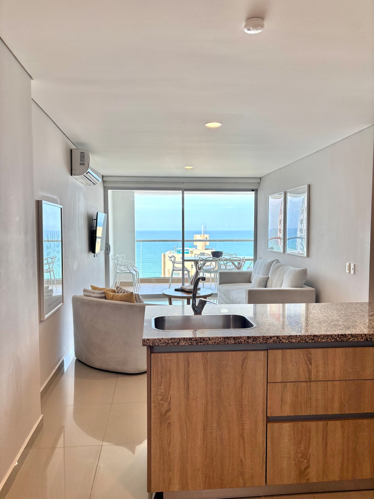 Bem-vindo a um apartamento de canto elegante com vistas deslumbrantes para o mar aberto. Pôr do sol de tirar o fôlego. Venha desfrutar de um lar longe de casa. Vibrações agradáveis e relaxantes. Cozinha de tamanho completo. A apenas 50 metros de distância da entrada do prédio para a praia. Localização incrível com tudo ao seu alcance neste edifício com porteiro 24 horas. Mercearias, lojas de conveniência, lojas de vinhos, farmácias, restaurantes e muito mais. Fácil deslocamento de 5 a 10 minutos para a antiga cidade colonial.