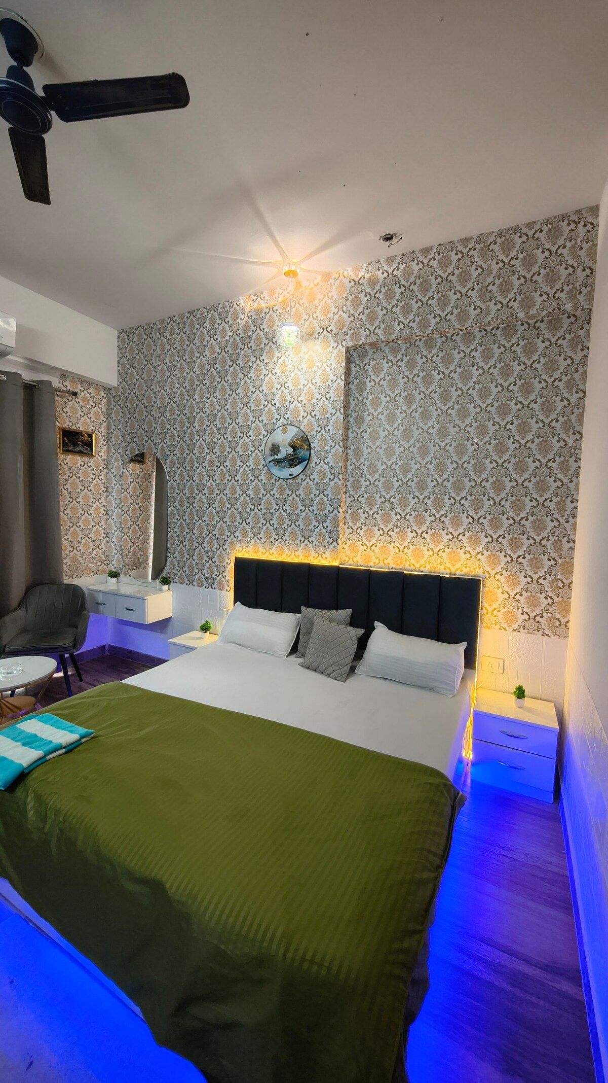 Bem-vindo ao Miracle Homes – Paramount Golfforeste, Greater Noida Quartos e acomodações: Nossos quartos espaçosos e bem mobiliados são projetados para proporcionar um refúgio relaxante. Cada unidade possui: Camas aconchegantes com lençóis limpos Banheiro privativo anexo com acessórios modernos Ar-condicionado para conforto ano todo o ano Smart TV e Wi-Fi gratuito Guarda-roupa e mesa de trabalho Varanda em unidades selecionadas com vistas panorâmicas para a vegetação ou para o campo de golfe