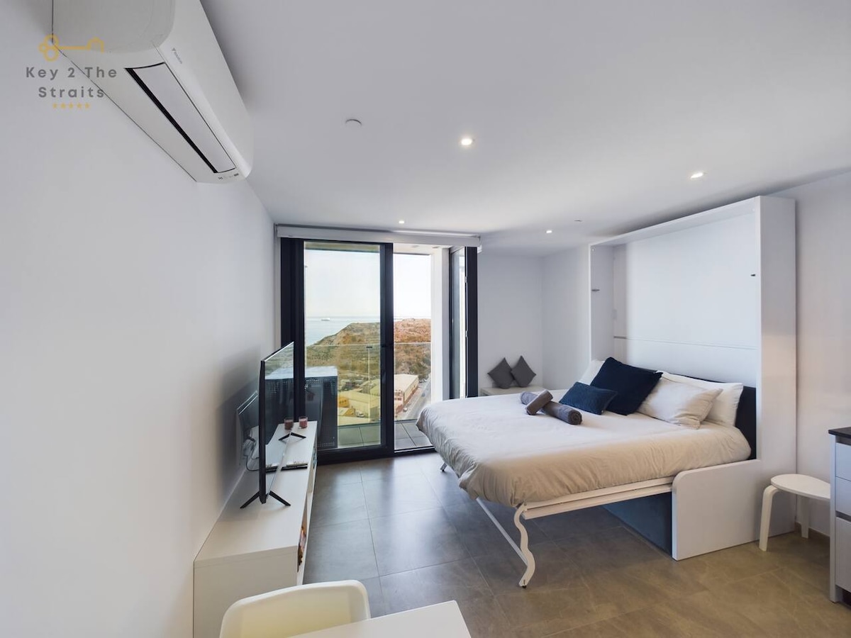 Nosso estúdio está situado no sexto andar do The Residence, um empreendimento recém-concluído em uma área de patrimônio protegido no coração da incrível Gibraltar. Você encontrará todas as comodidades que precisa para tornar sua estadia confortável. Você tem o uso da piscina de imersão no terraço e do deck com vista panorâmica da cidade e do Rochedo. A poucos passos da porta do estúdio está um grande terraço comum virado para o oeste, onde você pode desfrutar de sua bebida favorita e observar o pôr do sol.