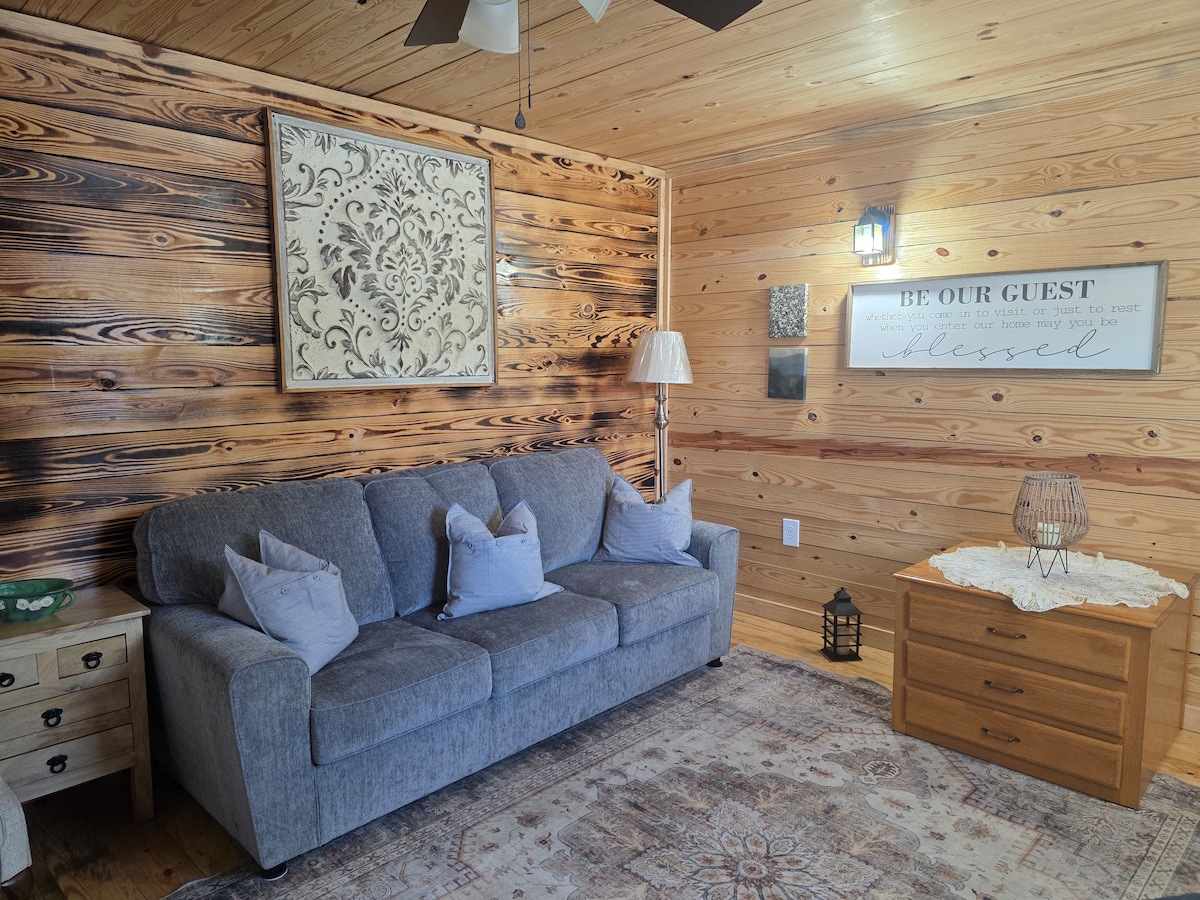Este apartamento estúdio foi concluído em 2023. Ele dispõe de cozinha completa com cafeteira Keurig, cama king size, futon queen size e TV de 65". Do lado de fora, há um deck privado com churrasqueira a gás e mesa no pátio. Está localizado a 3,3 milhas do centro de Blacksburg. A arte nas paredes é feita por artistas locais. Entrada sem chave. Estacionamento em cascalho ao lado do prédio. Os proprietários moram no local em um prédio separado. Observação: é necessário subir um curto lance de escadas para ter acesso ao edifício.
