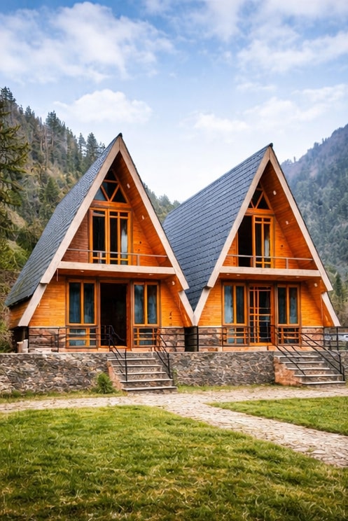 Cabana de luxo em forma de A com vista para a montanha no Vale de Neelum