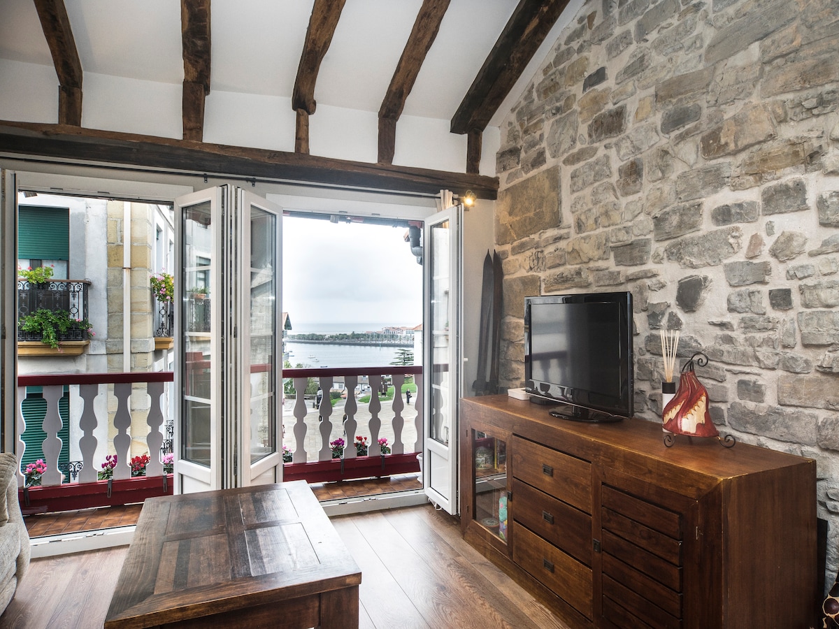 Espectacular apartamento, mesmo na praia com as melhores vistas de toda a baía de Txingudi, ideal para viajar em qualquer época do ano. Completamente remodelado, é composto por 1 quarto, kitchenette, banheiro espaçoso com chuveiro, sala de estar com sofá-cama e um formidável terraço. A cerca de 15 minutos a pé do centro, está localizado em frente ao ponto de ônibus. Perfeito para viajar como casal ou casal com filhos, possui elevador, jardins, balanços e estacionamento na urbanização.