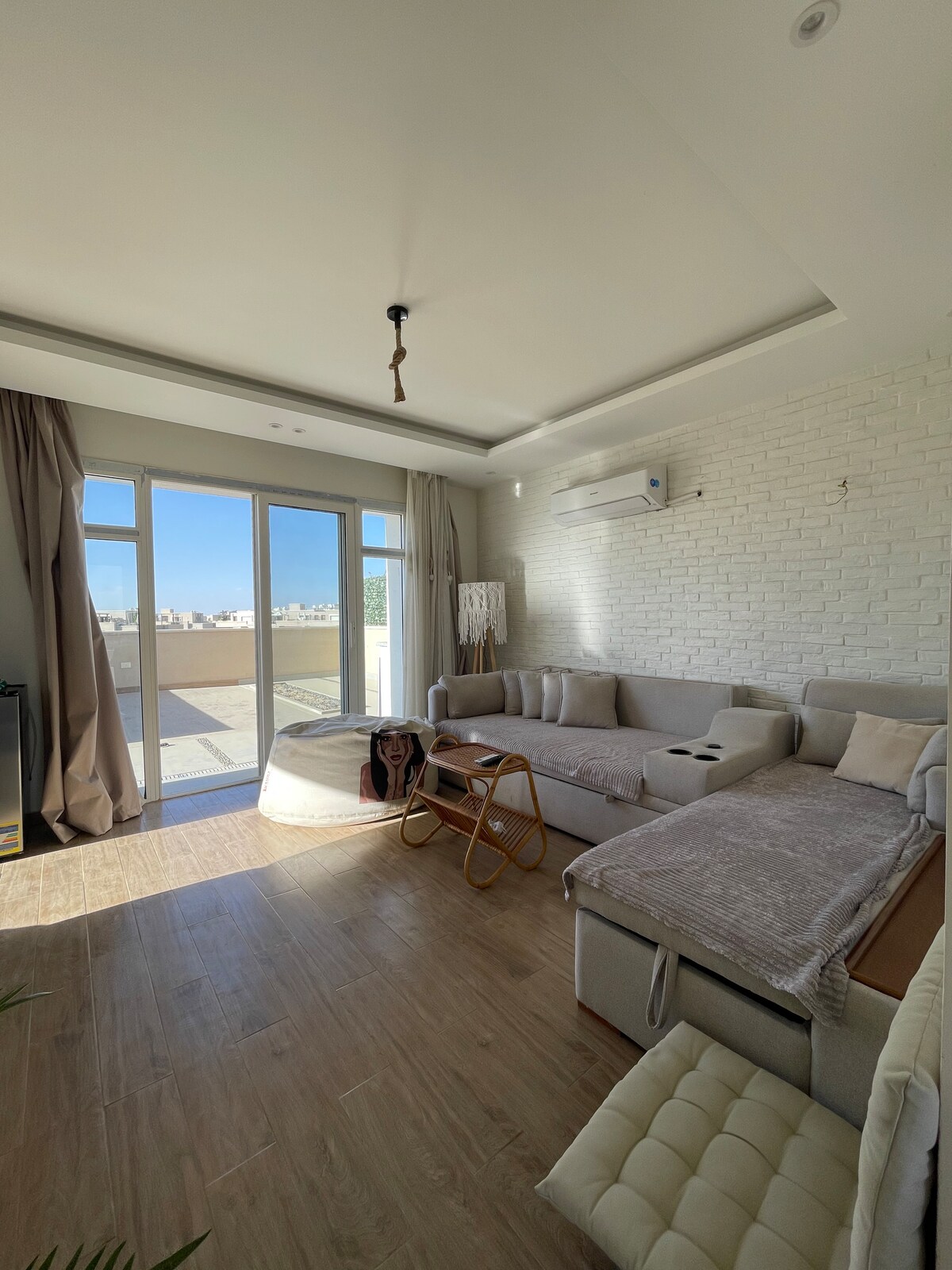 Bem-vindo ao seu refúgio de luxo em Privado, Madinaty – o condomínio fechado mais premium e sereno do Cairo! Acorde com vistas panorâmicas deslumbrantes para o lago do seu jardim privativo em nosso apartamento elegante, projetado com um toque costeiro e tons suaves inspirados no oceano. O Privado é uma obra-prima da Perkins Eastman USA, com vista privada para o lago, espaços verdes exuberantes, lojas de luxo e opções de refeições a uma curta caminhada de distância. Esta casa oferece o equilíbrio perfeito entre conforto, elegância e natureza.