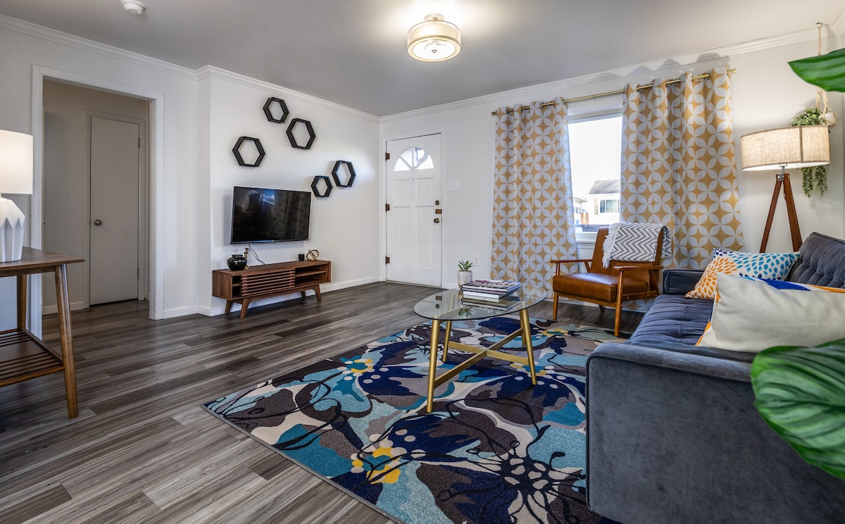 Rustic Retreat in Soulard – Walk to Bars & Farmers Market! Unwind in this cozy 1-bedroom escape in the heart of Soulard, where rustic charm meets modern comfort. Enjoy a plush Queen bed with premium linens, fiber WiFi (500 Mbps), and a fully stocked kitchen with Keurig. The spacious living area is perfect for relaxing, and the in-unit washer/dryer adds convenience. Just steps from Soulard’s vibrant nightlife, top restaurants, and the historic Farmers Market, with a Walk Score of 89. Book today!