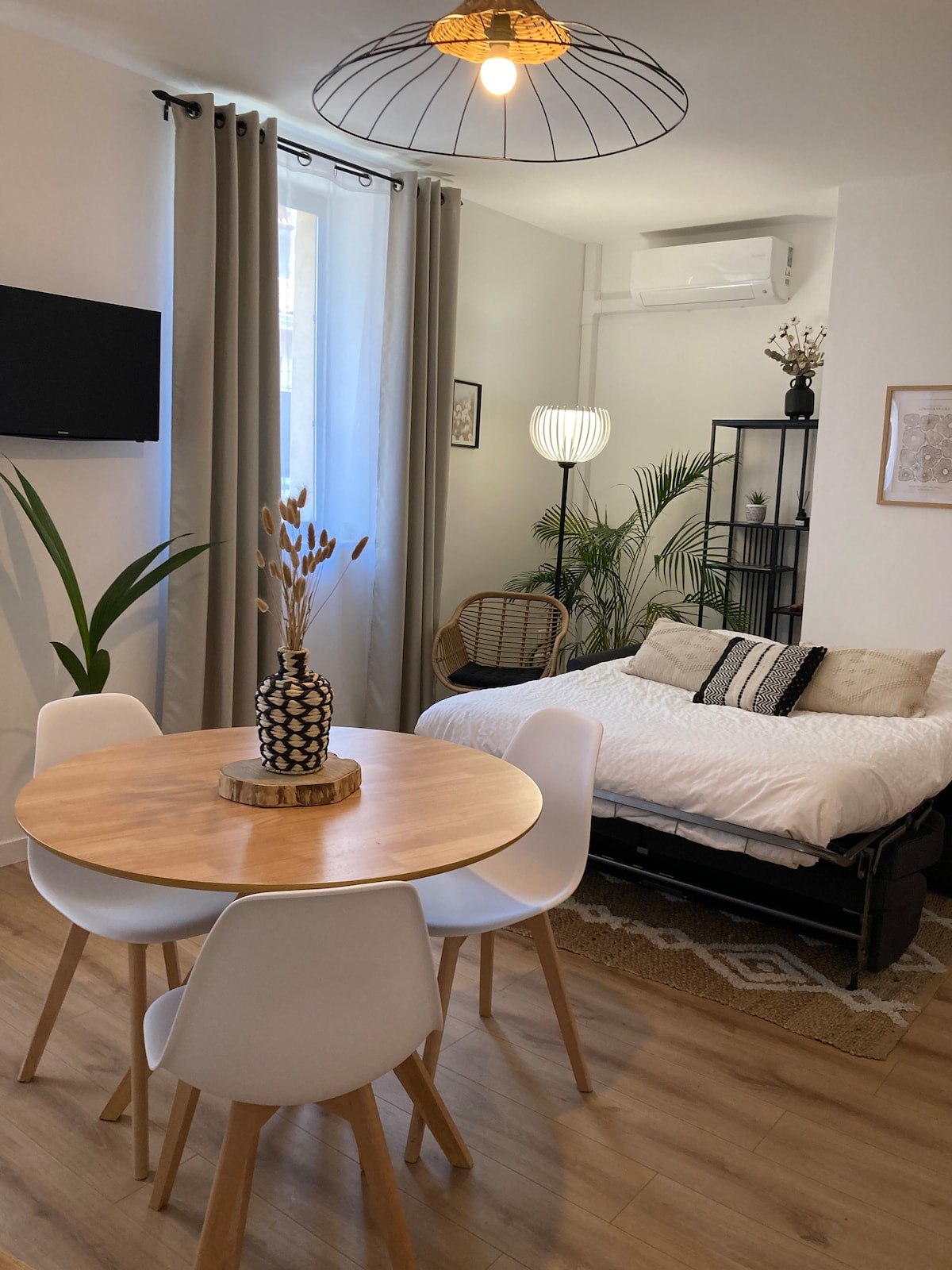 Studio centre-ville, 5 mn de la gare à pied, parking gratuit gare. Très bonne prestation, super équipé, refait entièrement à neuf, au RDC, fond de cour au calme et sécurisé. Couchage 2 personnes, 1 vrai lit queen size matelas à mémoire de forme. Appart non-fumeur. Arrivée entre 15h et 19h. Possible d’arriver en dehors de ces horaires mais avec un supplément. SDB : Douche italienne 120x70 Toilettes séparées. Chambre : Lit 160x200, TV 50’’ Placard de rangement, Fenêtres avec volets électriques.