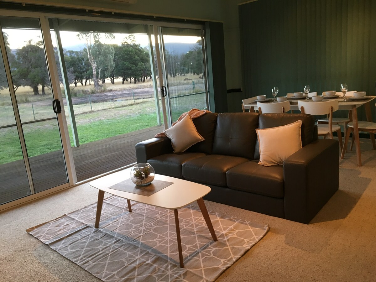 "Aurora Cottages" Hosted by Halls Gap Accommodation Indulge in the breathtaking panoramic views of Mount William and the Grampians from your private deck at Mountain View. This romantic escape offers tranquility both indoors and out. Follow a private path to your secluded barbecue area and fire pit nestled among the gum trees. Lounge on the deck, immersing yourself in the soothing sounds of wildlife. Mountain View is your sanctuary from the everyday—a perfect retreat in Halls Gap.