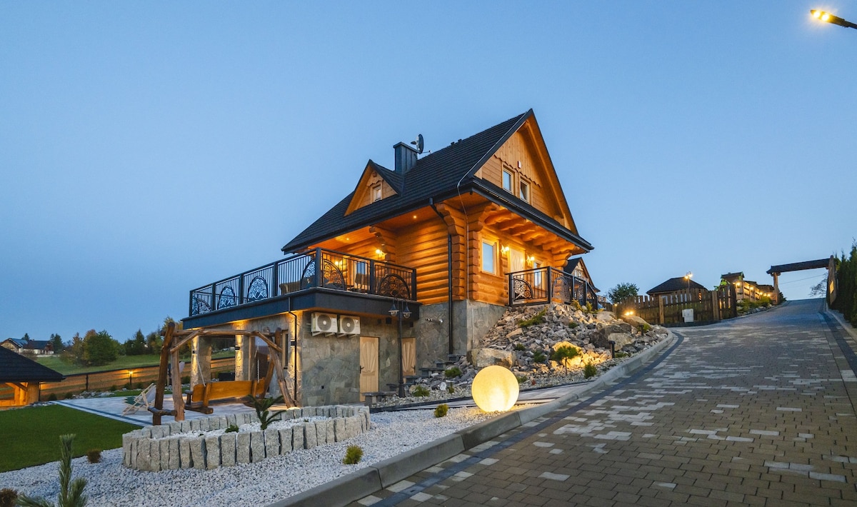 Chalé de madeira no vale de Slavíč, na região de Beskydy, com uma vista incrível