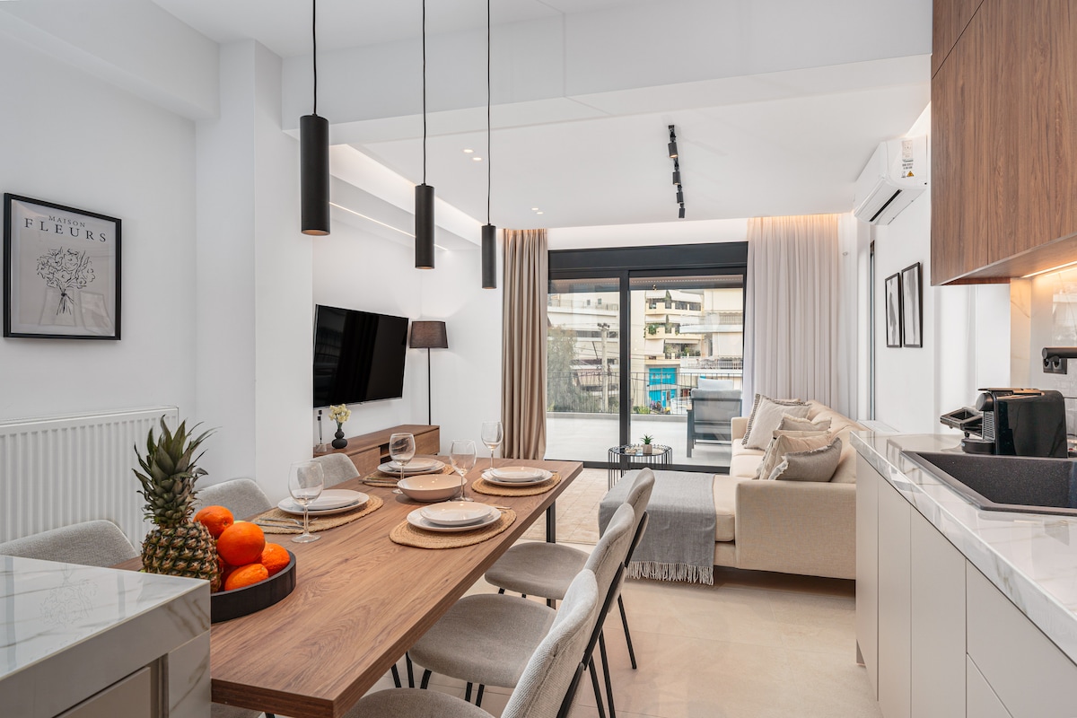 Desfrute de uma experiência única em um apartamento novo e ensolarado a apenas 5 minutos do centro de Glyfada e a 5 minutos da estação de metrô Elliniko, localizado em um bairro tranquilo com ruas largas e estacionamento sempre disponível! Totalmente equipado com tudo o que uma casa pode precisar (cafeteira, torradeira, chaleira, panelas, secador de cabelo, etc.). Grande pátio privativo, lareira, smart TV, máquina de lavar/secar, suprimentos de comida e a opção de serviços de limpeza durante a sua estadia. De nada!!!