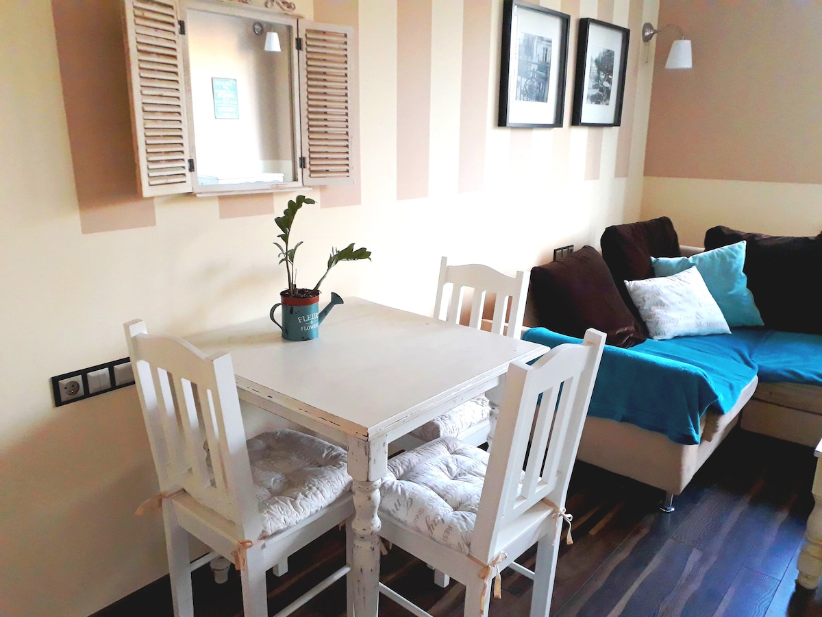 Apartamento bonito e ensolarado em uma antiga casa de cortiços recém-renovada. Excelente vista para a praça da cidade – o coração do distrito histórico, que é cenário popular para filmes por causa de sua arquitetura única (por exemplo, Ponte dos Espiões de Spielberg). O melhor lugar para sentir o espírito de Wroclaw, fora do turismo de massa, mas a apenas 2 paradas de bonde da praça do mercado. Cozinha bem equipada, máquina de café Nespresso, mobiliário vintage, Netflix. Bicicleta da cidade, ponto de ônibus e estacionamento em frente ao edifício.