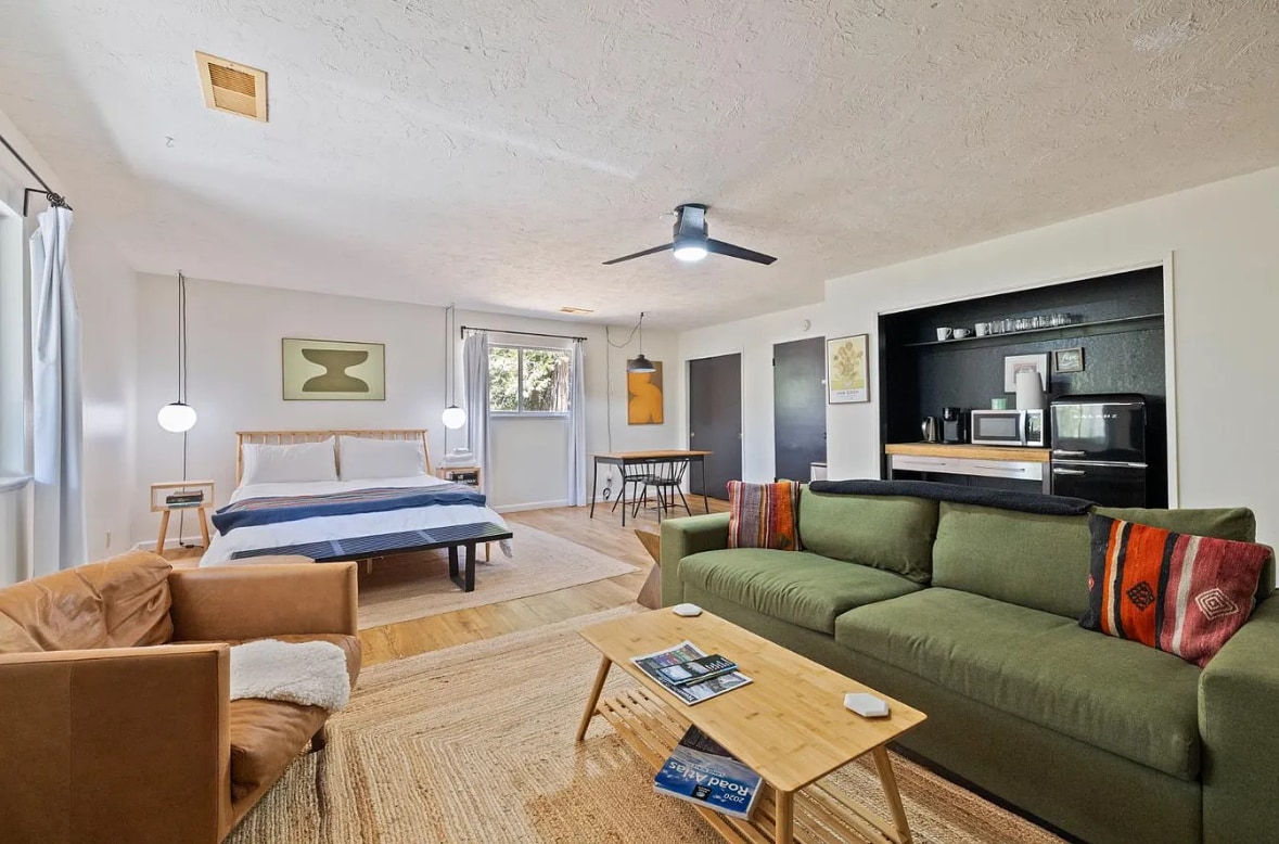 Esqueça de suas preocupações neste lugar espaçoso e tranquilo. Você vai adorar este apartamento aconchegante, luminoso e moderno casita/estúdio com sua própria entrada privativa. Localizado perto de belos parques. Mobiliário moderno com uma espaçosa cozinha completa para incluir louças e eletrodomésticos modernos. Ótimo para casais, aventureiros solitários e viajantes a trabalho. Wi-Fi rápido e seguro, TV, cama tamanho Queen. Ferro e tábua de passar roupa. Pequeno pátio frontal disponível para sua diversão.
