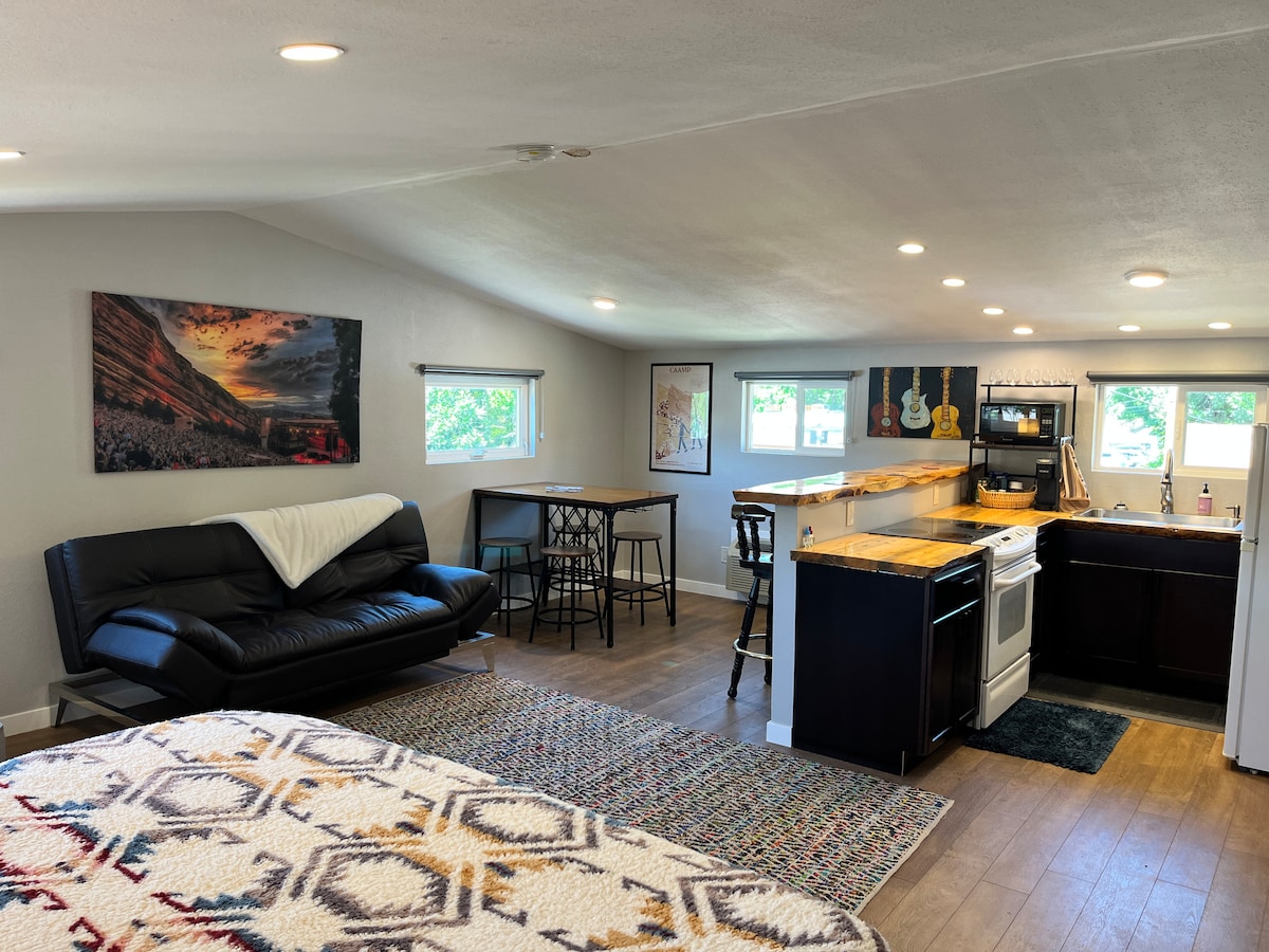 Casa de um quarto a uma curta distância a pé/de bicicleta do centro de Golden 10 min. a pé de Clear Creek e lojas do centro da cidade. 5 min. para N Table Mountain caminhadas, escalada e ciclismo 15 minutos das Red Rocks. Deck ao ar livre + vista para a montanha Esta é uma residência separada em nossa propriedade, nossa família de 5 pessoas está sempre correndo por aí, então você pode encontrar-nos! * PROIBIDO FUMAR * *A ocupação da unidade é limitada a quatro (4) pessoas não relacionadas * Licença dourada: STR2021-0019