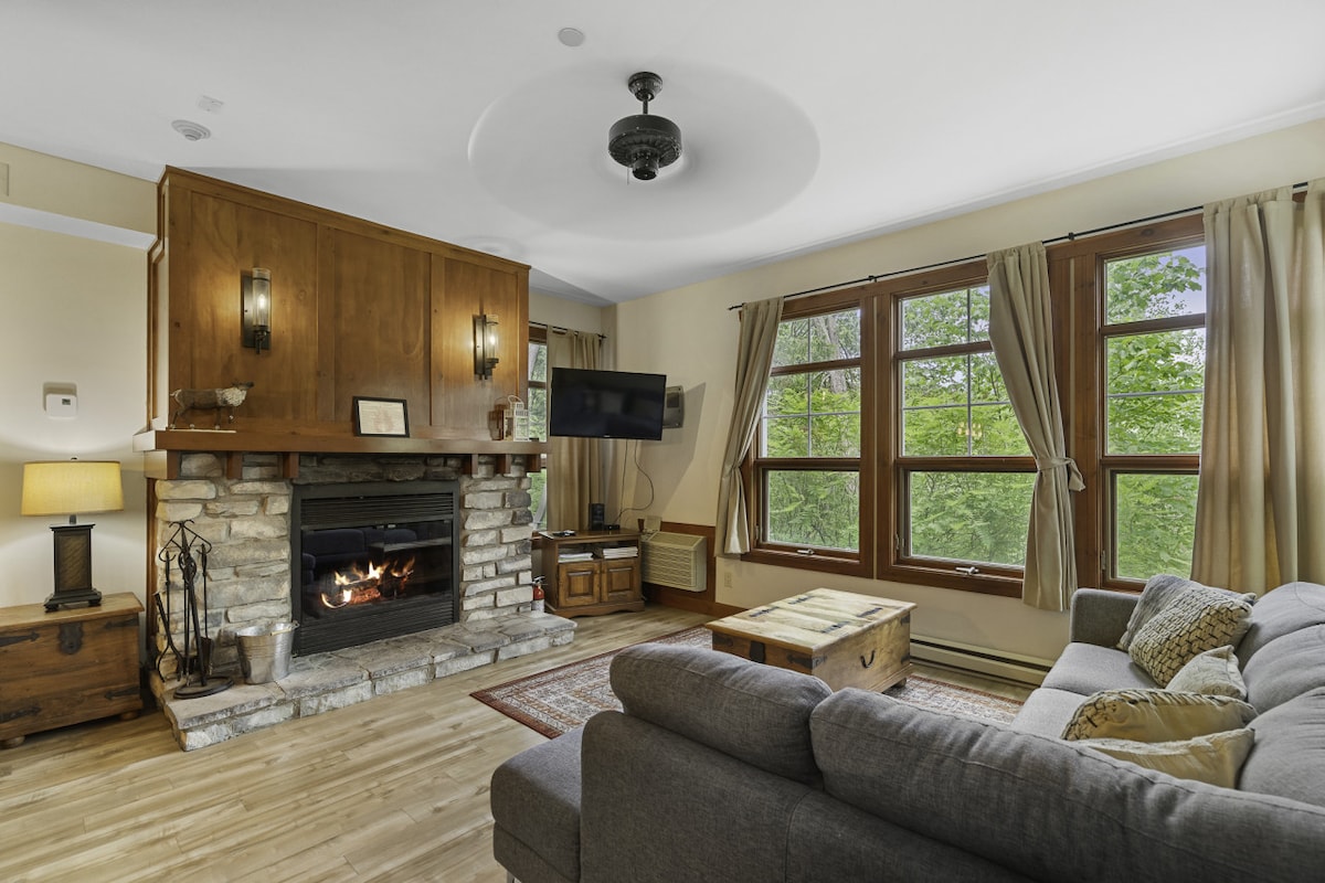 Tremblant Escape. Condomínio de 2 quartos localizado a uma curta caminhada da vila principal. Você terá acesso a 2 piscinas (verão) e 2 banheiras de hidromassagem (toda a temporada). Distância a pé (15 min) ou serviço de transporte gratuito para a base da vila. Localizado perto de lojas e restaurantes, mas aninhado na natureza. Fácil acesso a atividades como caminhadas, ciclismo, trilhas para caminhadas e esqui. Totalmente equipado com máquina de lavar/secar, WI-FI, lareira a lenha e cozinha completa. Ideal para famílias e estritamente para não fumantes. Animais de estimação não são permitidos.