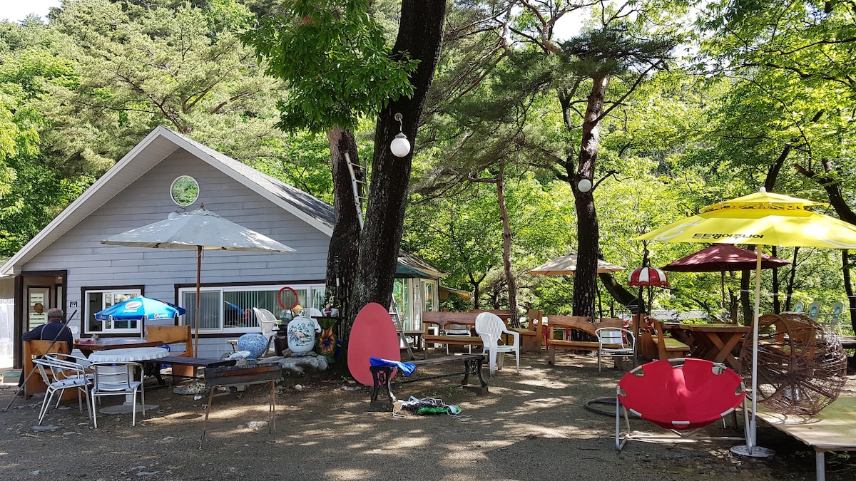 É um local de observação do luar onde a lua brilha no céu. Pensão privada com um vale e floresta onde a água limpa e os cedros azuis se misturam (entrada separada/uso exclusivo/check-in e check-out sem contato) 2 pessoas básicas, 6 pessoas no máximo, excluindo pessoas básicas Custo adicional de 40.000 KRW por pessoa (o custo adicional pode ser pago em conjunto ou transferido para a conta após a consulta) * Deve verificar * #2 pessoas como padrão/máximo 4 pessoas 1. Espaço: sala de estar (espaçosa), cozinha, 1 quarto (cama queen), 1 banheiro Colchão de solteiro (topper), roupa de cama e toalhas são preparados. #Máximo de 5-6 pessoas 2. Espaço: sala de estar (espaçosa), cozinha, 1 quarto (cama queen), 1 quarto (cama de solteiro super), 2 banheiros Colchão de solteiro (topper), roupa de cama e toalhas são preparados. #Fogueira para 2 pessoas (sem limite de tempo) 16.000 KRW (mini braseiro, 13-15 lenha, luvas, pinças, gás butano, tocha, isqueiro, agente de ignição, jornal) # Churrasqueira a carvão para 2 pessoas (sem limite de tempo) 22.000 KRW (grelha, grelha de aço inoxidável, carvão, isqueiro, tesoura, pinças, óleo de cozinha, sal, papel alumínio, envoltório, luvas, pinças de fogo, isqueiro) Endereço: 228, Mukan-ro, Seorak-myeon, Gapyeong-gun, Gyeonggi-do