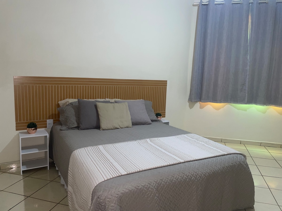 " Ar condicionado nos 2 quartos". Estamos no bairro Lagoa Santa um dos melhores bairros de GV. A menos de 10 minutos do centro, próximo ao "Big mais" supermercado ,a restaurantes, farmacias,bares ,temos várias academias por perto,temos o calçadão da lagoa para caminhada e laser.Temos certeza que aqui vc se sentirá em casa.